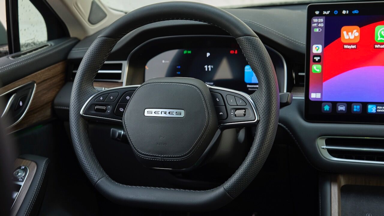 A nivel de chasis, el Seres 5 destaca por ser un coche bastante confortable en términos generales. Con su suspensión delantera de doble horquilla y la trasera multibrazo es capaz de filtrar a la perfección todas las irregularidades del asfalto y mostrar una suavidad envidiable. La dirección va en la misma línea, aunque también cambia bastante con los modos de conducción. Lo mismo le ocurre al nivel de retención, que se complementa con una frenada regenerativa de tacto natural, siempre teniendo en cuenta el grado de asistencia en eléctricos.
