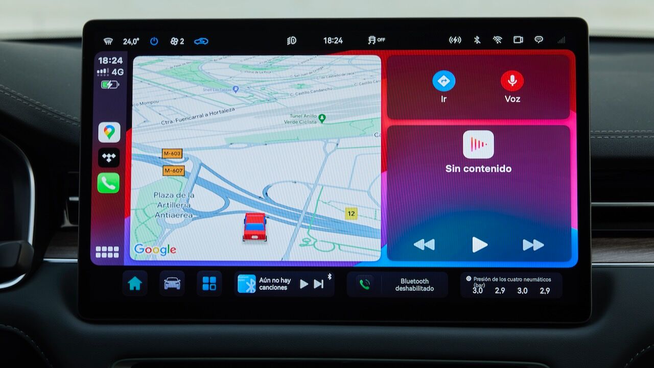 Tiene un tacto preciso, cercano al de la pantalla de un smartphone. La respuesta es rápida y los menús bastante intuitivos, pues también se aplica la dinámica de aplicaciones a la que estamos tan acostumbrados. Cuenta con una integración tanto con Apple CarPlay como con Android Auto de forma inalámbrica, lo mismo que la superficie de carga para dejar hasta dos móviles.
