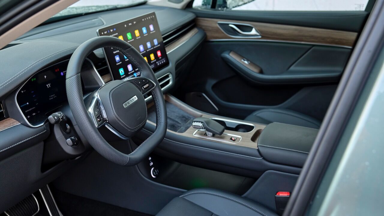 En general podemos decir que la calidad es muy buena, nada que ver con lo que conocíamos de DFSK. De hecho, se postula para luchar contra los premium, pues ya hemos visto que su precio es bastante elevado y tiene que justificarlo. Aquí vemos una tapicería de cuero muy aparente y molduras de madera, no queda rastro del piano black que tanto hemos criticado.
