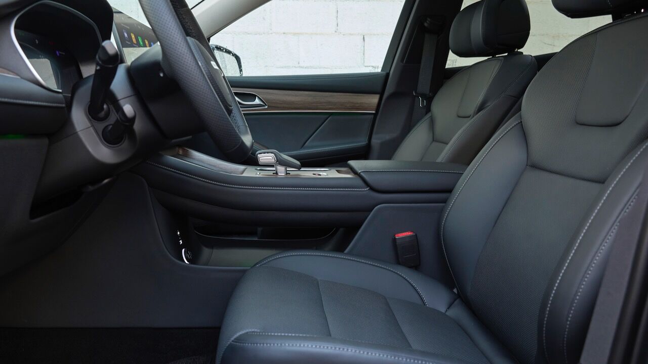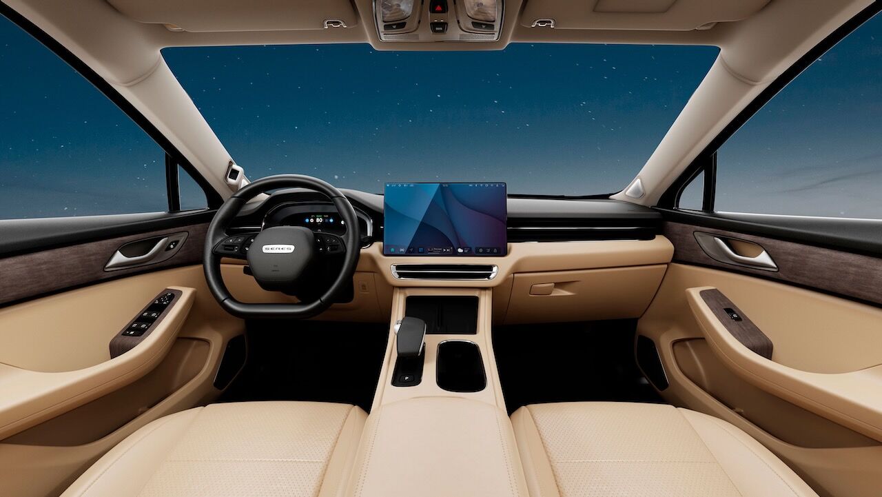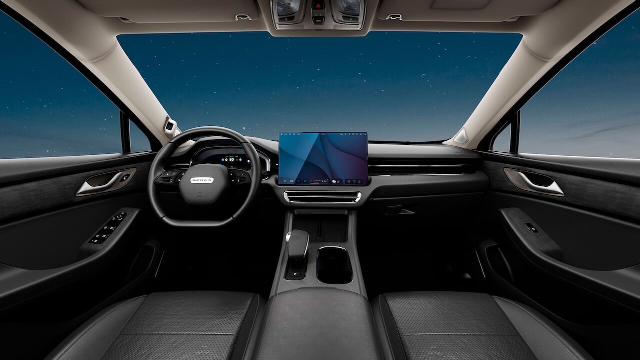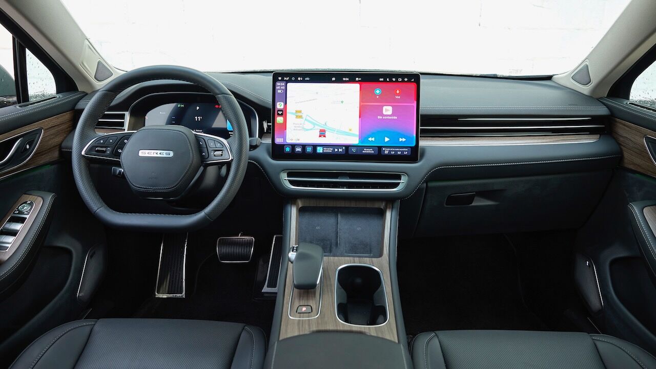 En el interior del Seres 5 encontramos pocas sorpresas. Como la mayoría de eléctricos de marcas emergentes, ha apostado por una digitalización total y lleva el minimalismo por bandera. Eso significa que la gran protagonista es la pantalla táctil central de 15,6 pulgadas que sobresale en el salpicadero. Es la más grande de entre todas las que montan sus competidores directos, aunque por muy poco, ya que tanto el Mustang Mach-E como el Tesla Model Y pasan de las 15 pulgadas. Como decíamos, su integración no es la mejor, pero va a destacar más por sus funcionalidades.
