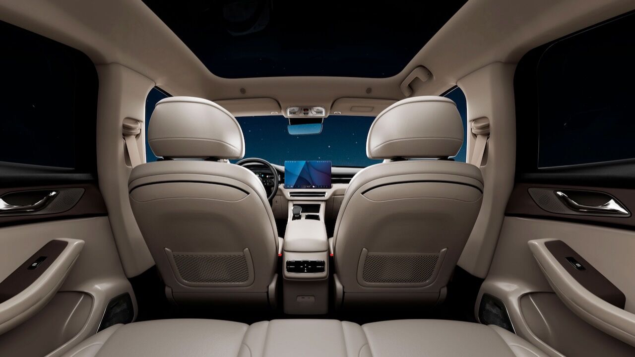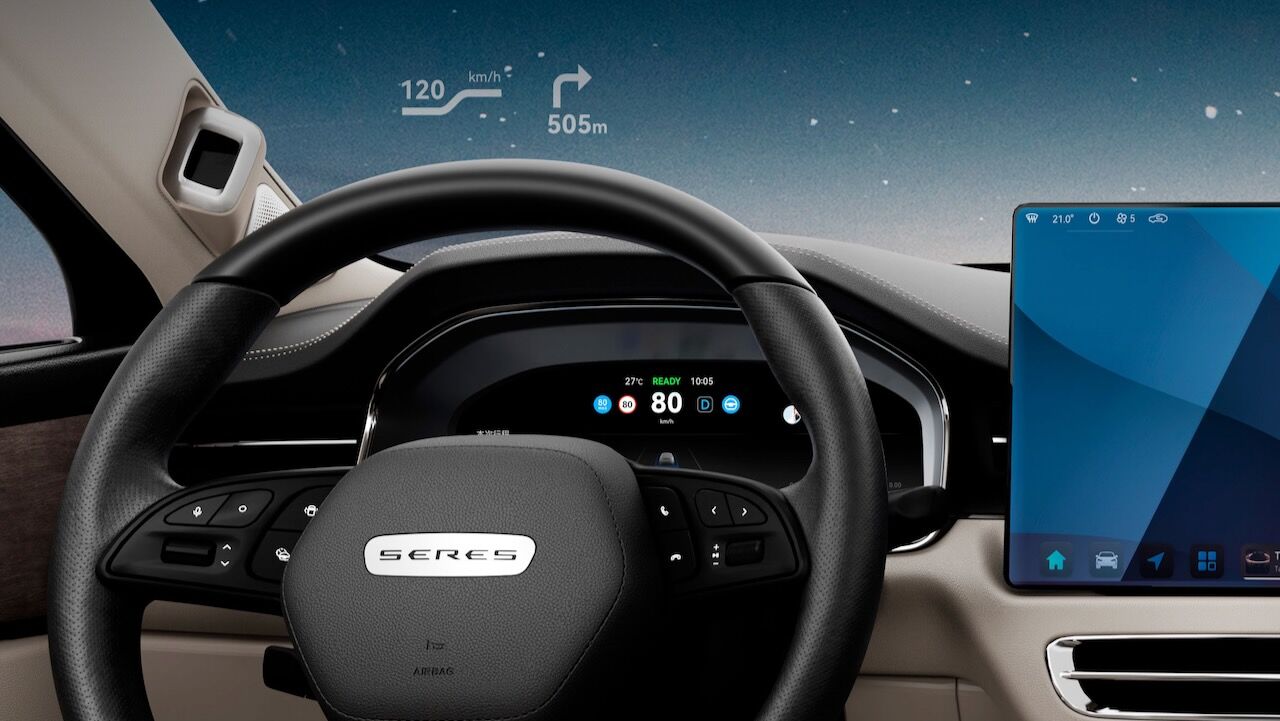 En general, se puede decir que el Seres 5 es un coche bastante espacioso, incluso en la segunda fila de asientos. Aquí hay un hueco generoso para las piernas y uno que no está mal para la cabeza. La sensación viene reforzada por la enorme superficie acristalada, sobre todo cuando se opta por el techo panorámico de 2,16 metros de largo.