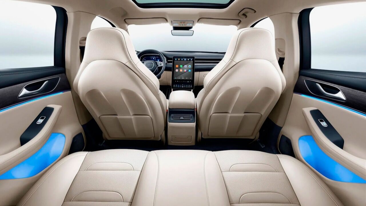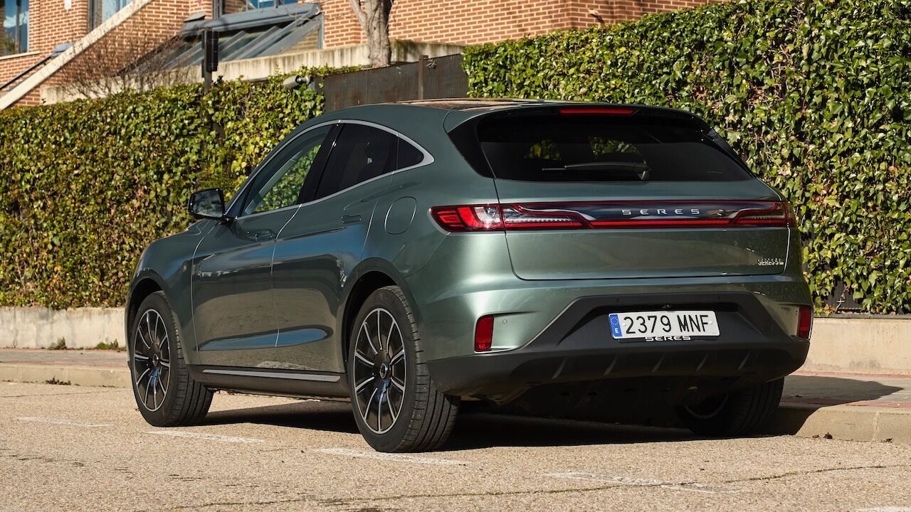 La zaga es la parte más normal del SUV eléctrico chino. Comienza con un pequeño spoiler de techo que integra la tercera luz de freno y continúa con un portón que consideramos que está dentro de la tendencia actual. Eso se debe a que cuenta con unos pilotos traseros LED que quedan unidos por el centro mediante la iluminación y también por un marco negro que incluye el nombre de la marca. La zona inferior queda reservada para una especie de difusor sin salidas de escape que ya deja claro que estamos ante un eléctrico.
