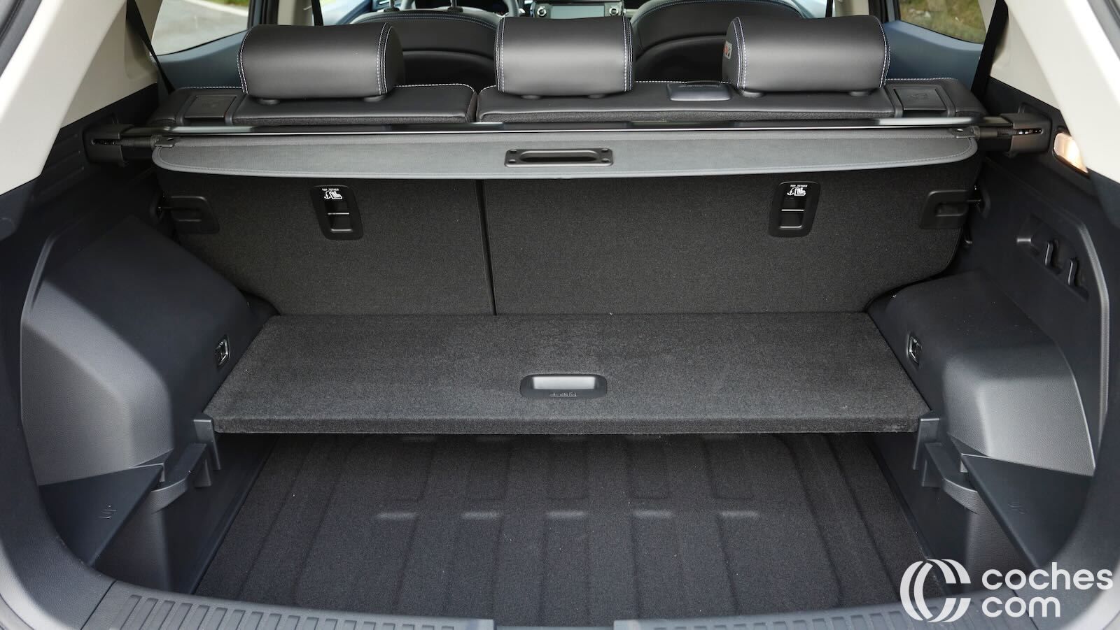 Es un espacio al que se accede bastante bien y que cuenta con un interesante doble fondo, un lugar ideal para llevar los cables de carga. Además, es posible abatir los respaldos de la segunda fila de asientos, divididos en proporción 40:60, para conseguir un espacio de 1.248 litros de capacidad.