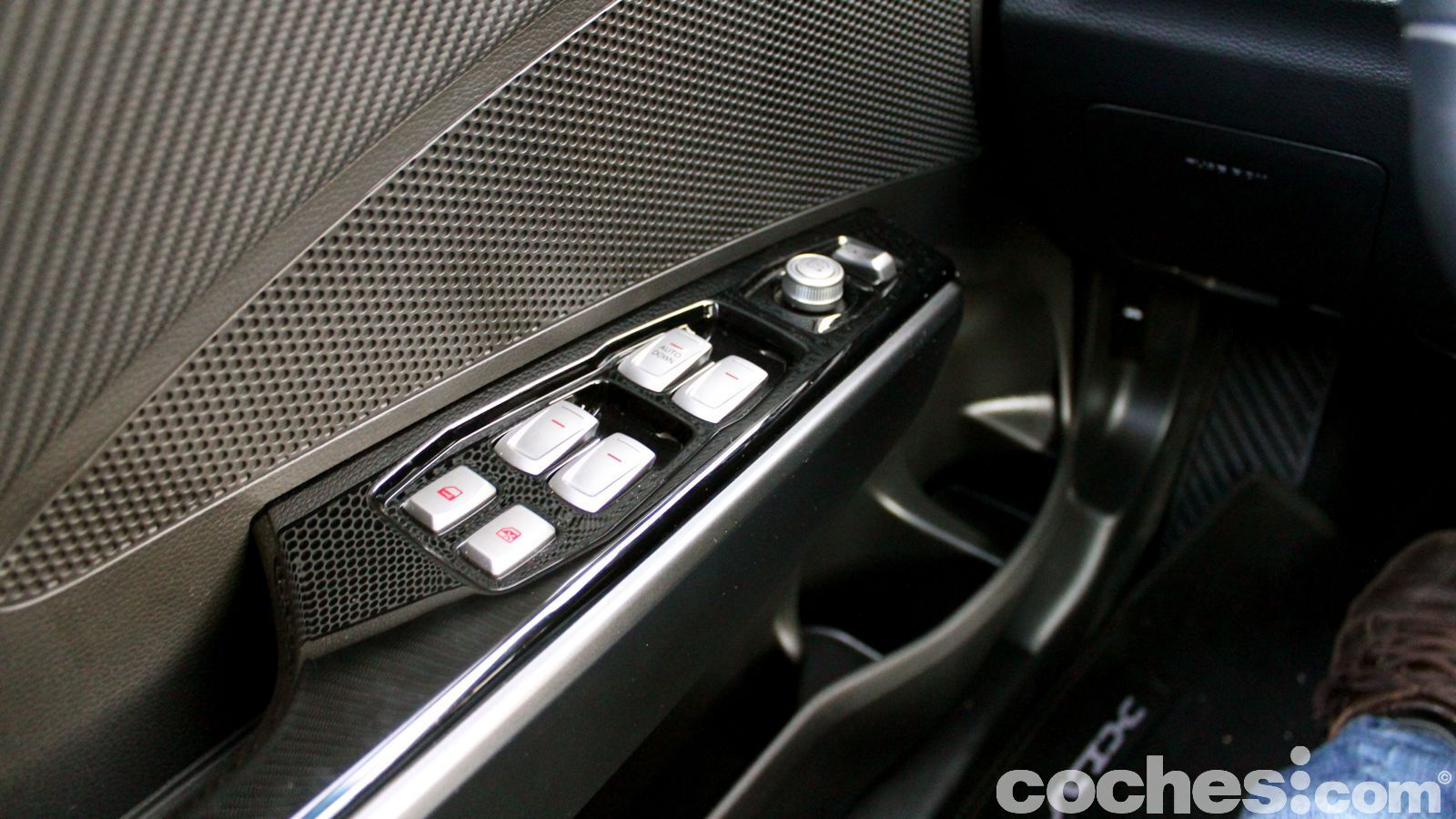 La consola central se ha rematado en negro piano, algo muy de moda pero que no nos gusta demasiado ya que atrapa bastante polvo y es difícil mantenerla limpia por mucho tiempo. En la parte superior de la misma encontramos el sistema de navegación, (firmado por TomTom) y entretenimiento, con una pantalla de 8 pulgadas. Tiene un manejo que obliga a desviar bastante la vista de la conducción (esto se va aprendiendo con el uso) y es algo lenta al ejecutar las órdenes. Su grado de inclinación hace que el sol incida bastante sobre ella, por lo que la visualización a veces no es buena.