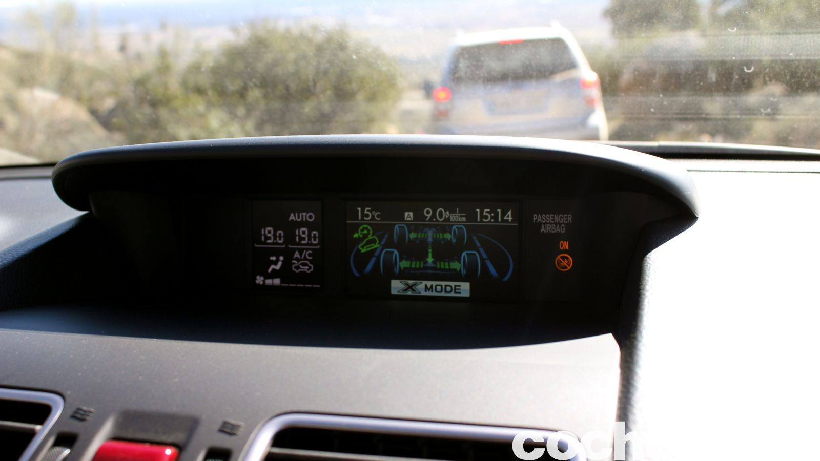 Otra novedad muy importante y que es otro de los puntos diferenciadores del coche es el sistema X-Mode, disponible por vez primera en los Subaru diésel. Sólo se incluye en las unidades con cambio automático y funciona junto con el sistema de tracción integral simétrica. Incluye el asistente de descensos, y con él gana eficacia el sistema de tracción 4×4 por zonas en mal estado con inclinación acusada, como en los cruces de ejes. Pero eso nos toca verlo ahora.