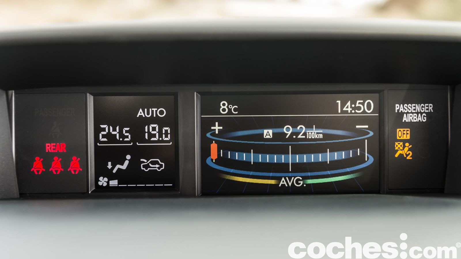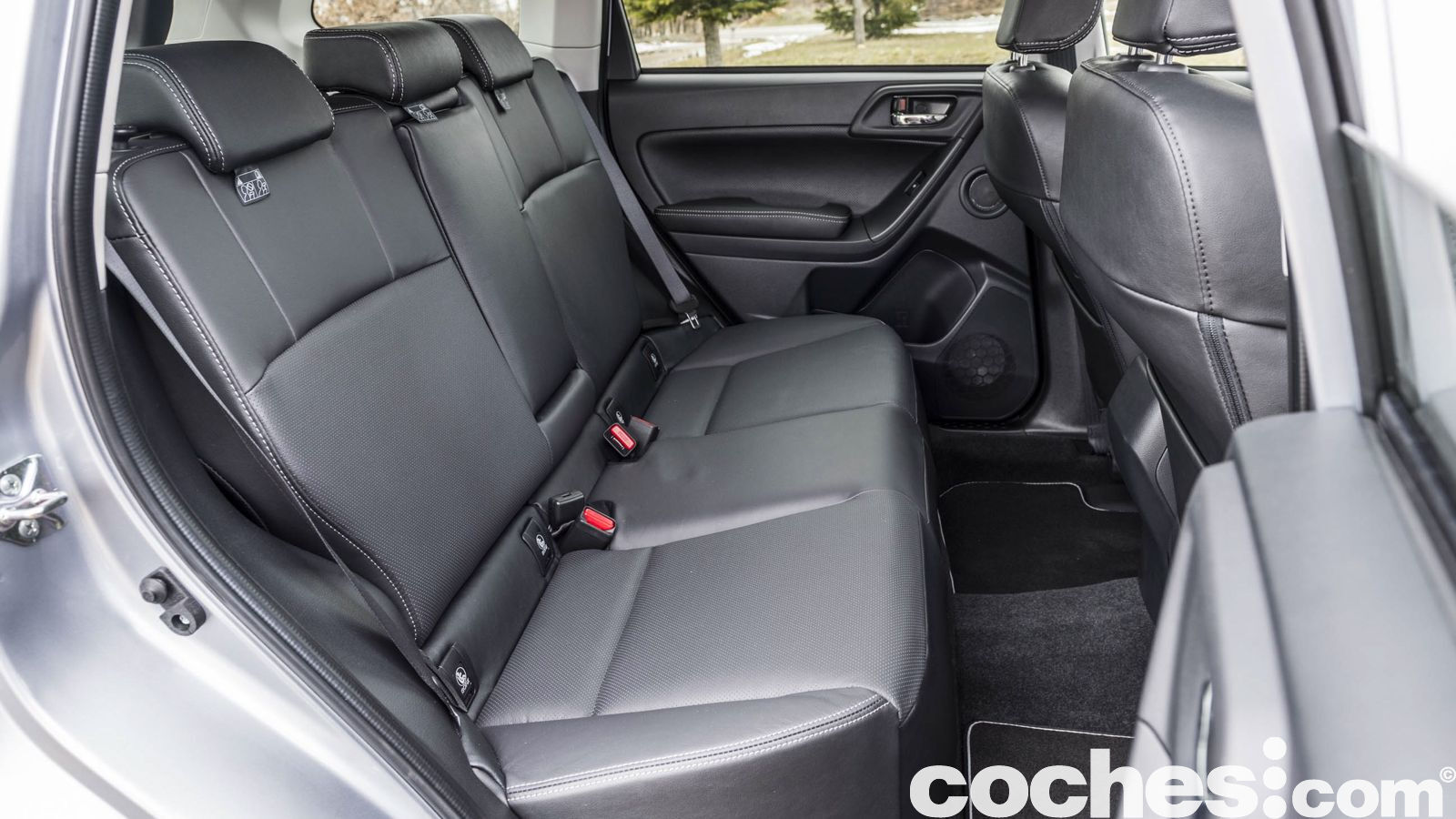 Dentro sí hay cambios más notorios. No en las cotas, ya que el habitáculo del Forester sigue destacando por espacio disponible en todas las cotas. Incluso en las plazas traseras un tercer ocupante no irá demasiado incómodo. En esa zona destacamos el espacio espacio disponible para las piernas (incluso en esa plaza central) y la considerable altura al techo.