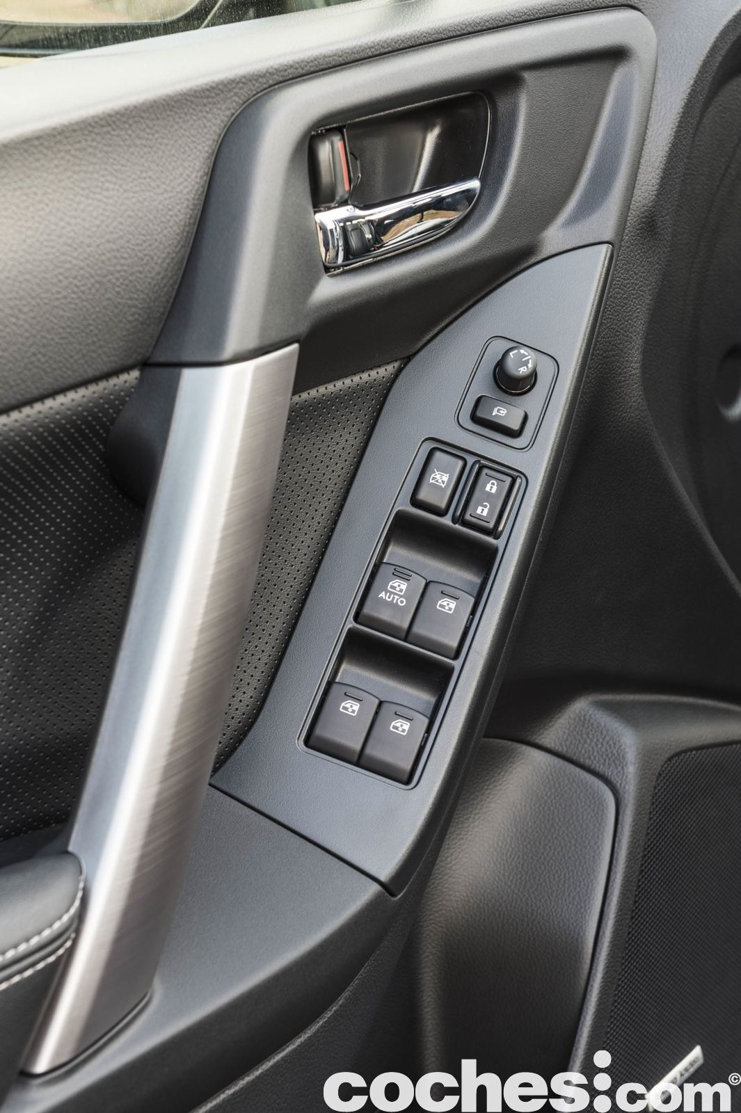 - Subaru Forester Executive: Añade el tapizado en piel, asiento del conductor eléctrico, acceso y arranque sin llave, cristales sobretintados, sistema de navegación integrado, portón posterior con apertura y cierre eléctricos...