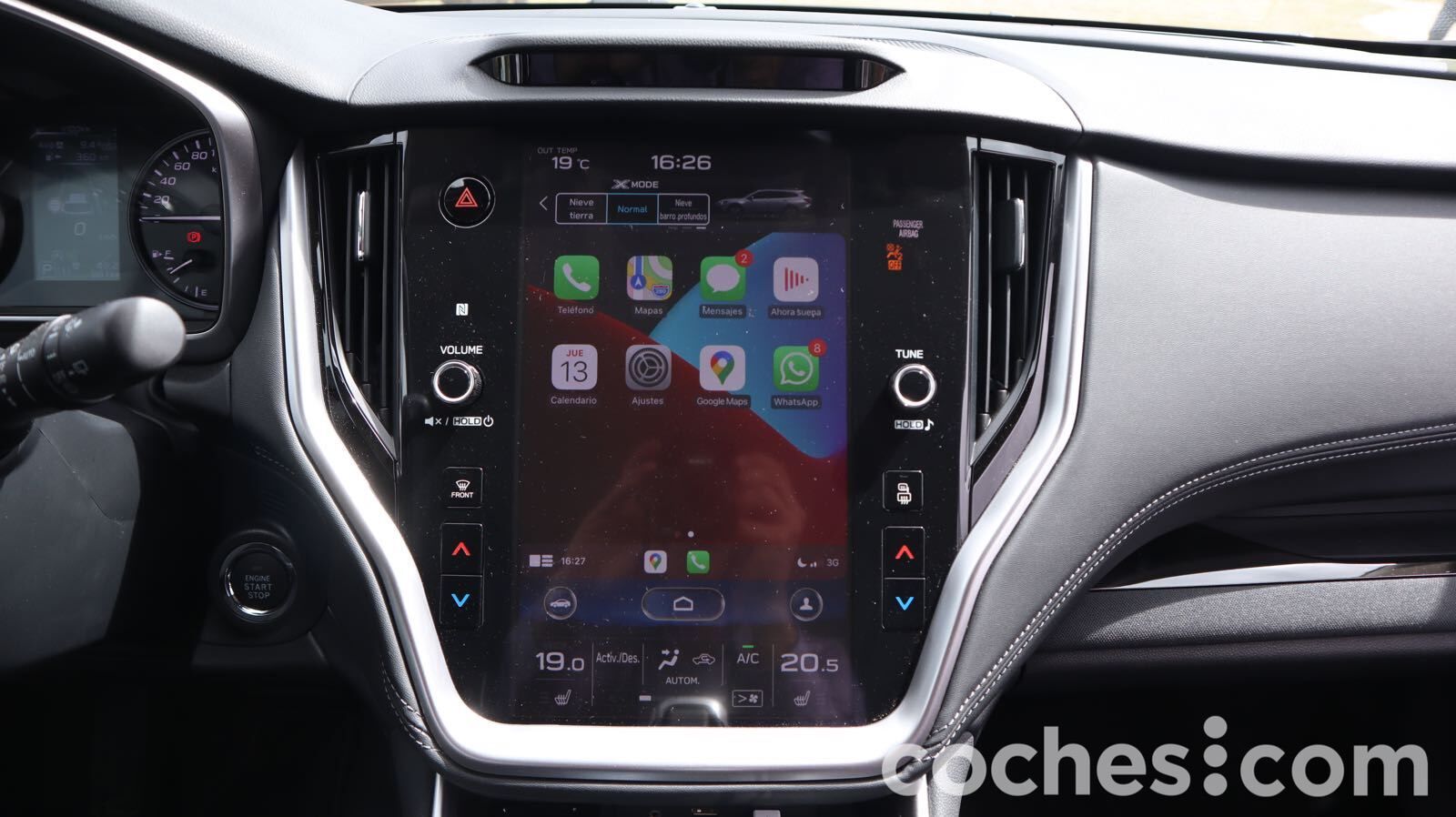 Y sí, todo ello de serie desde la terminación Trek, que es la de un perfil más urbano. A ella correspondía nuestra unidad), tiene tapicería en tela negra, la calandra y el pack outdoor plateado, llantas de aleación en color antracita con neumáticos todo tiempo con medida 225/60 R18, rieles de techo con barras transversales retráctiles, portón del maletero eléctrico manos libres, volante y asientos calefactados en la primera y segunda fila o la pantalla de 11,6 pulgadas compatible Apple CarPlay y Android Auto.