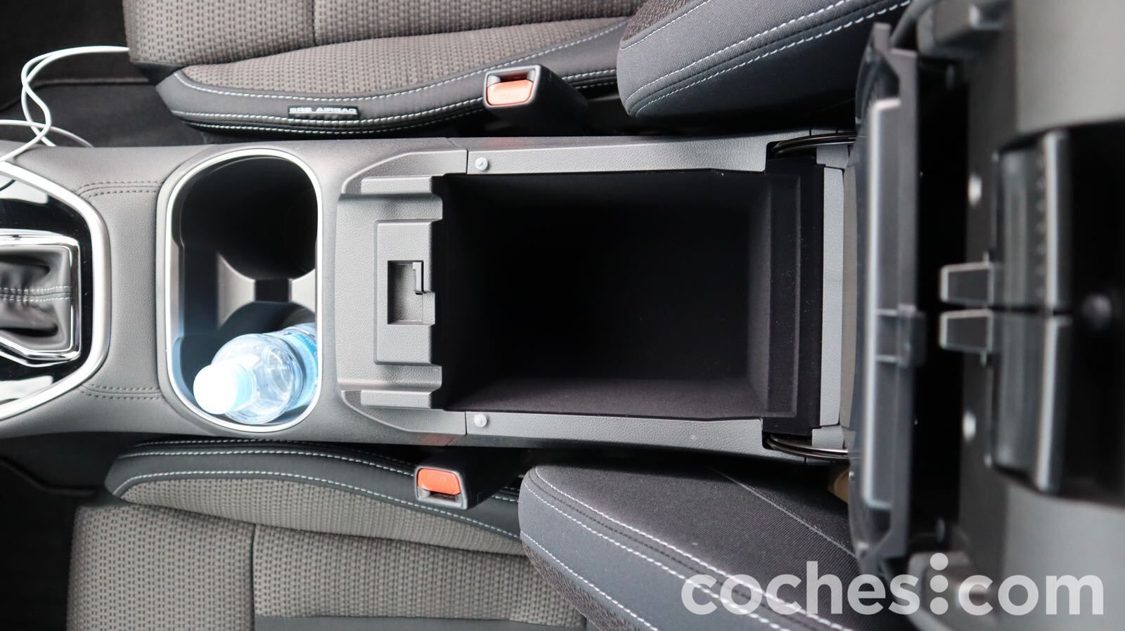 La consola central está bastante elevada, con la palanca del cambio en la parte delantera, cerca del volante. Hay antes un hueco para dejar algún objeto pequeño y un par de tomas USB y Aux, así como el freno de estacionamiento eléctrico. ¿Pega de esa zona? Pues que se haya empelado negro piano. Justo detrás, un par de reposabebidas y el reposabrazos, que oculta un cofre para guardar cosas.