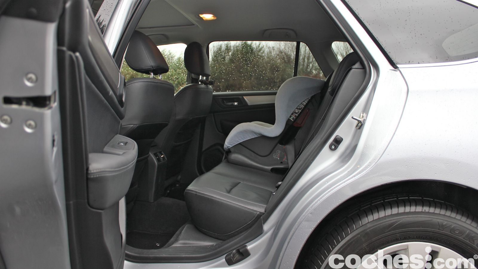 Si el anterior Subaru Outback ya era un coche excelente para moverse en familia, ahora ha ganado espacio detrás. La marca apunta que 42 mm en la zona de los hombros. No teníamos una unidad anterior al rediseño para comprobarlo, pero sí una sillita de niño y un par de adultos más para viajar en esas plazas.
