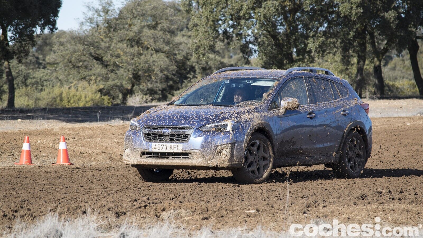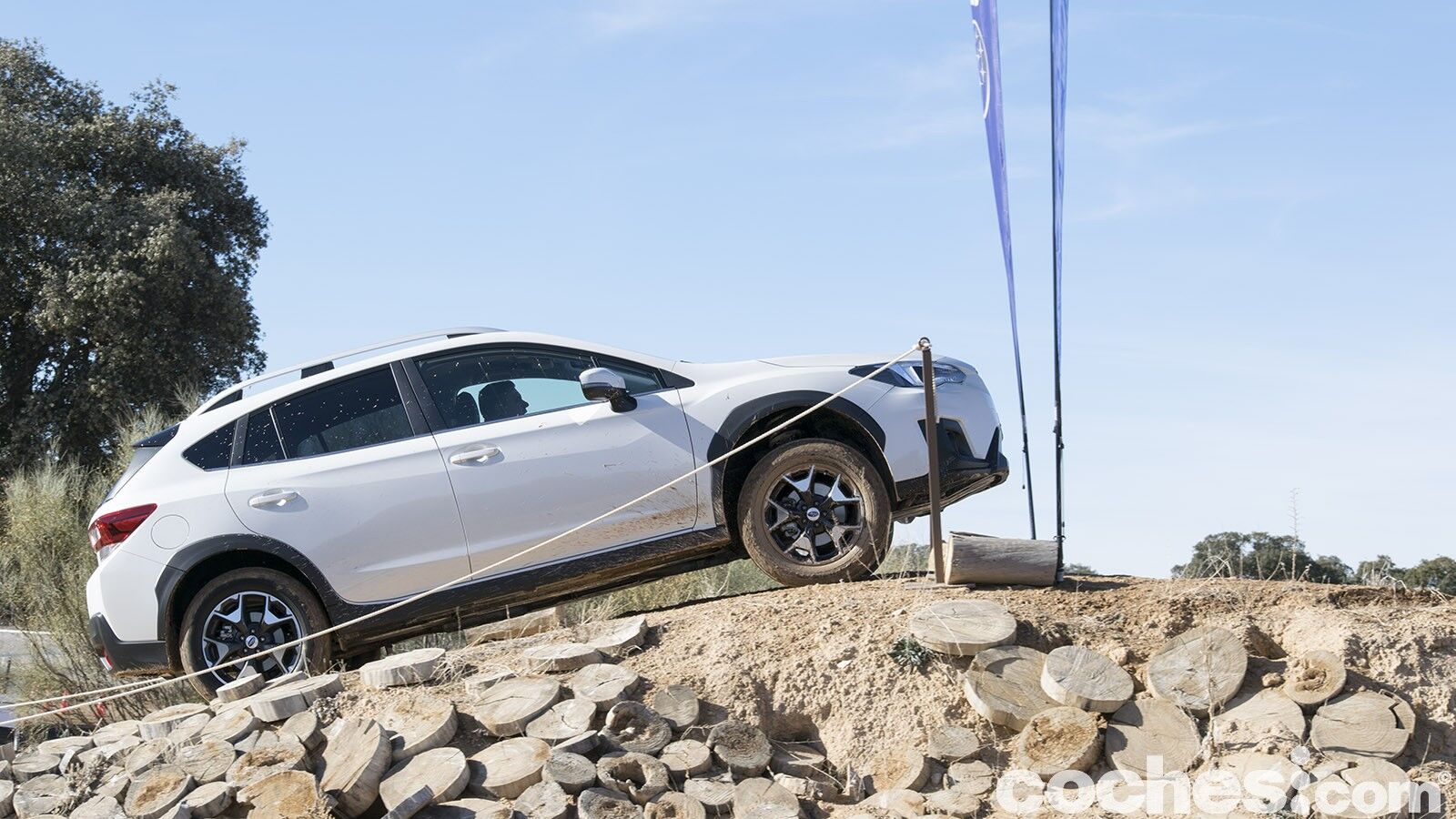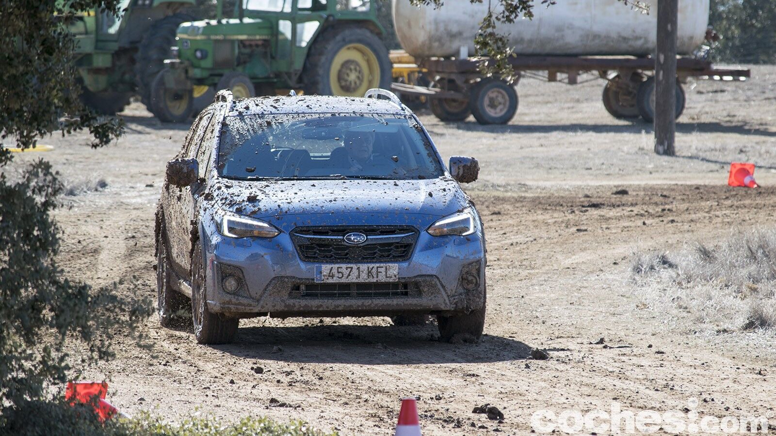 Tras la ruta por carretera, toca salir fuera de ella. Tenemos una pequeña ruta off road preparada, donde podemos ver todas las virtudes de la tracción Symmetrical AWD con reparto activo de par. Tener el sistema X-Mode de serie en toda la gama es una gran ventaja para aquellos que se aburran del asfalto y quieran aventurarse fuera de él. Activa el control de descenso de pendientes y garantiza que podamos llegar a cualquier lugar con el XV.