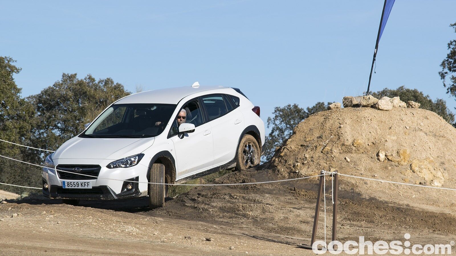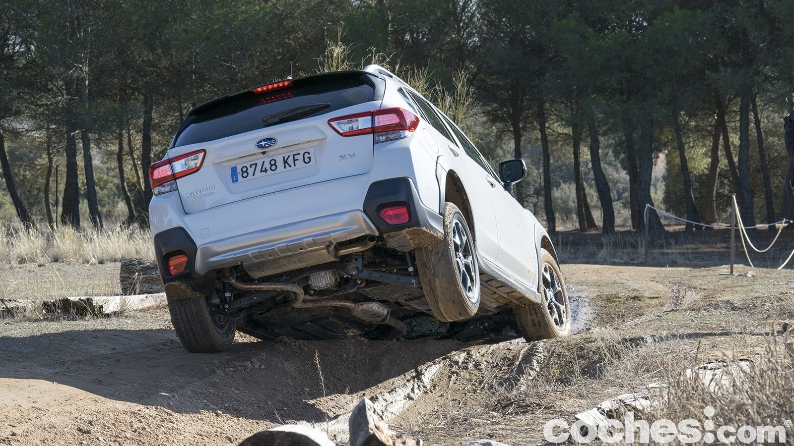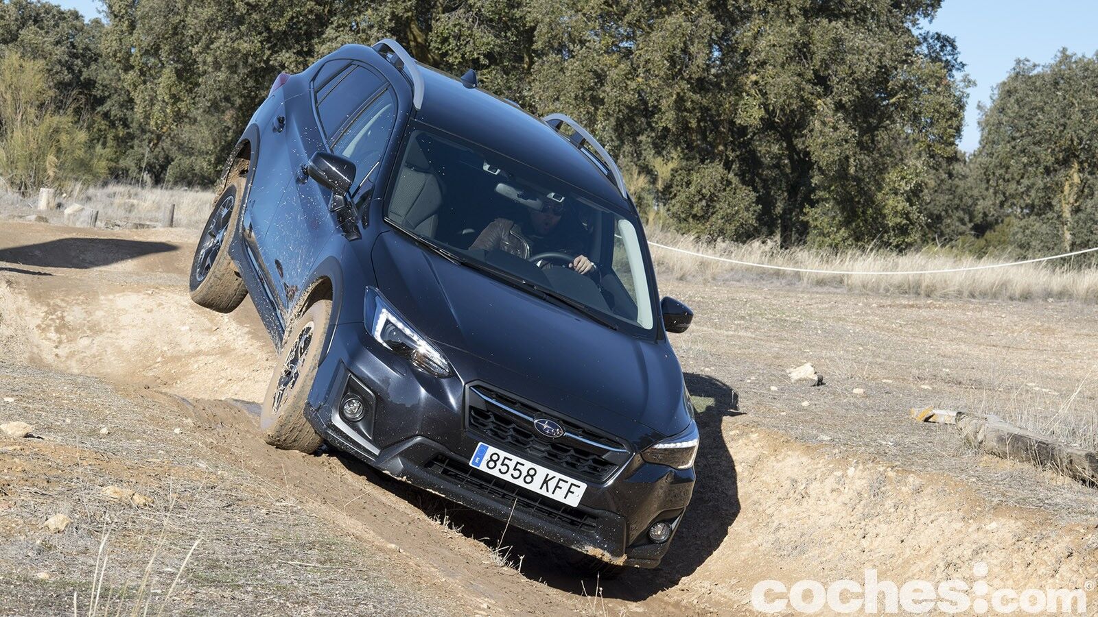 Tras la ruta por carretera, toca salir fuera de ella. Tenemos una pequeña ruta off road preparada, donde podemos ver todas las virtudes de la tracción Symmetrical AWD con reparto activo de par. Tener el sistema X-Mode de serie en toda la gama es una gran ventaja para aquellos que se aburran del asfalto y quieran aventurarse fuera de él. Activa el control de descenso de pendientes y garantiza que podamos llegar a cualquier lugar con el XV.
