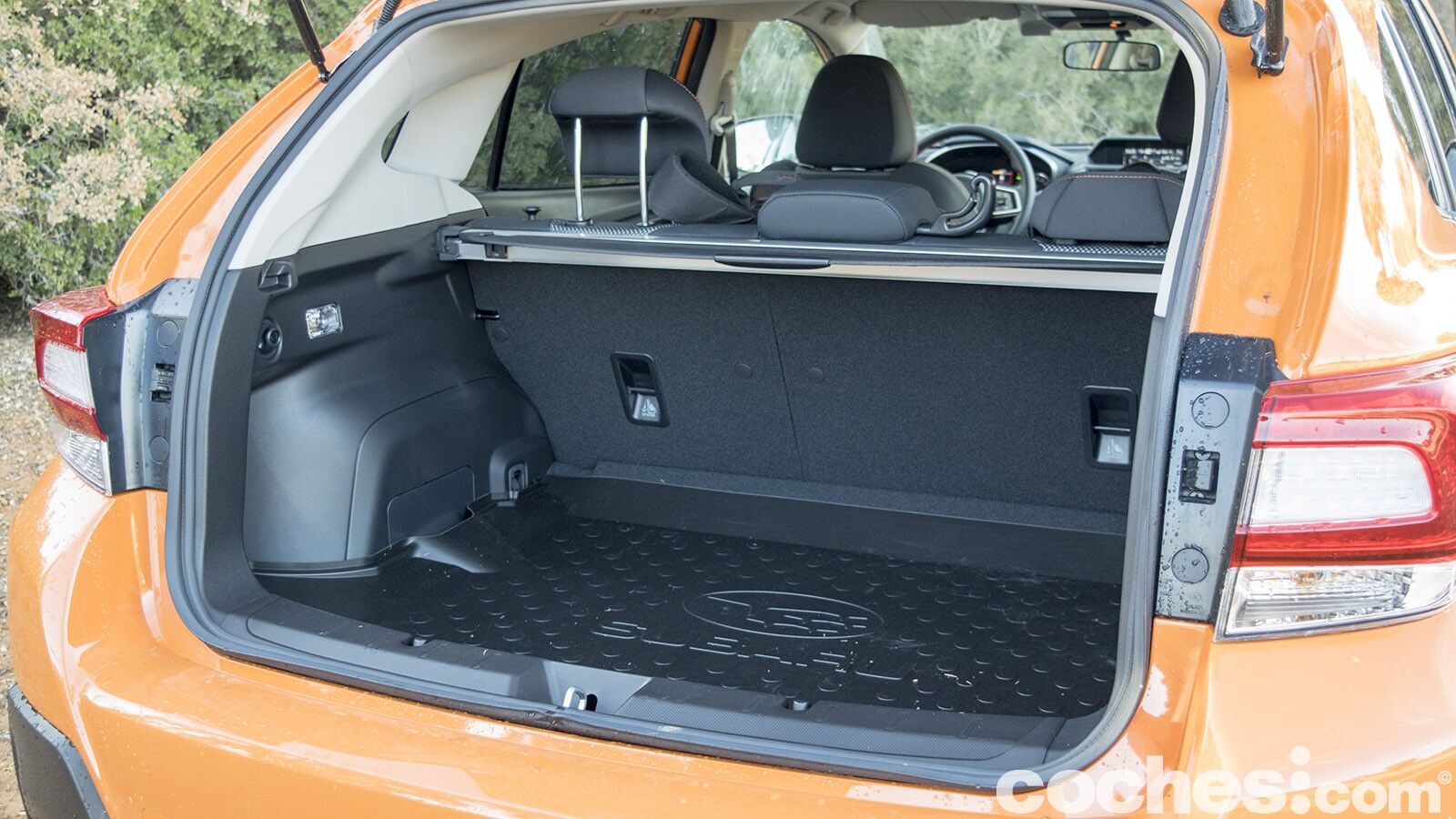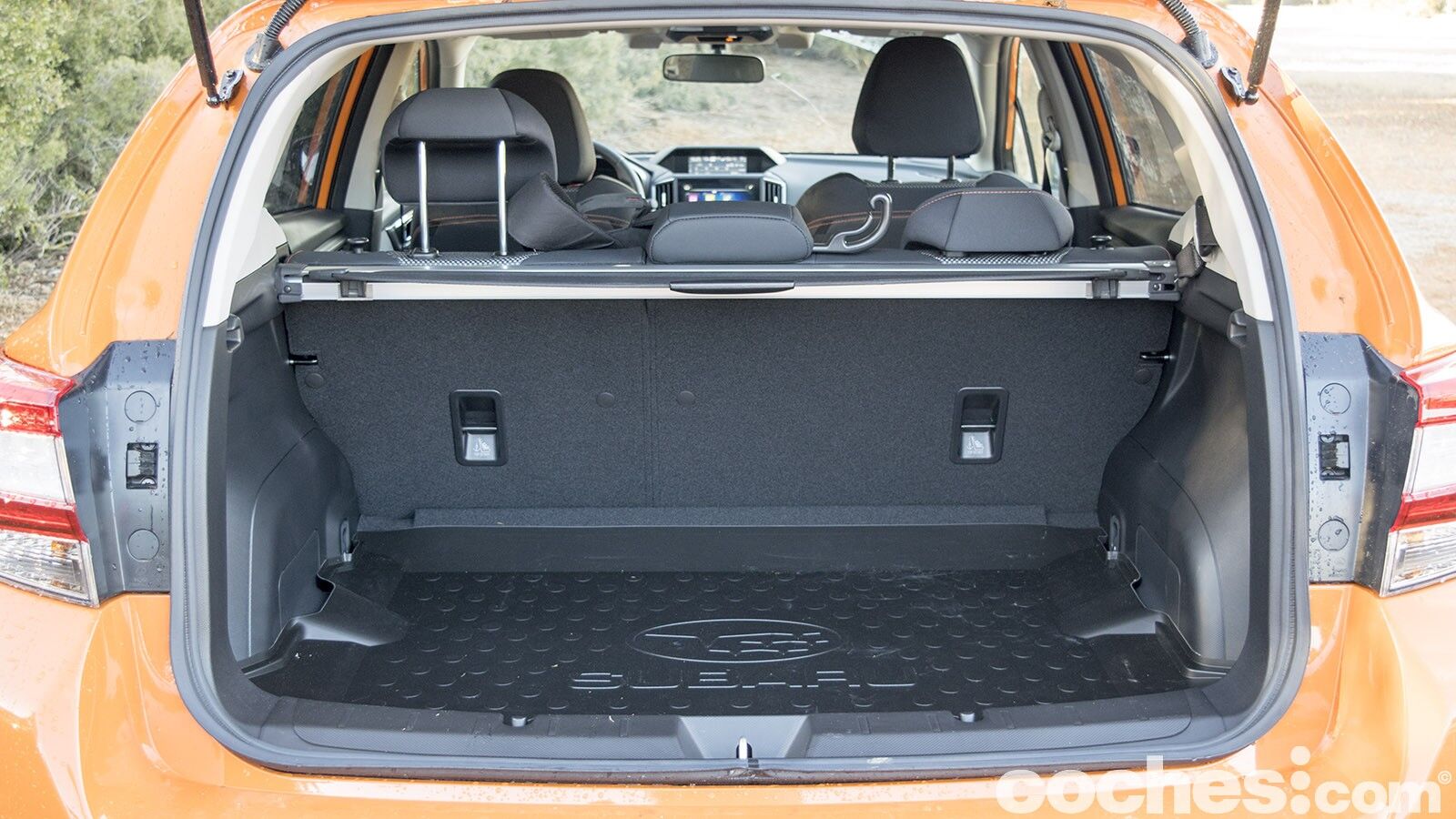 El maletero no suele ser uno de los puntos más destacados en un coche con tracción total. El emplazamiento del diferencial hace que no pueda aprovecharse el espacio hacia abajo y eso se traduce en menos litros de capacidad. El Subaru XV tiene un maletero de 385 litros, que se sitúa algo por debajo de la media. Aún así, es bastante aprovechable gracias a unas líneas muy rectas, con una gran anchura en la base.