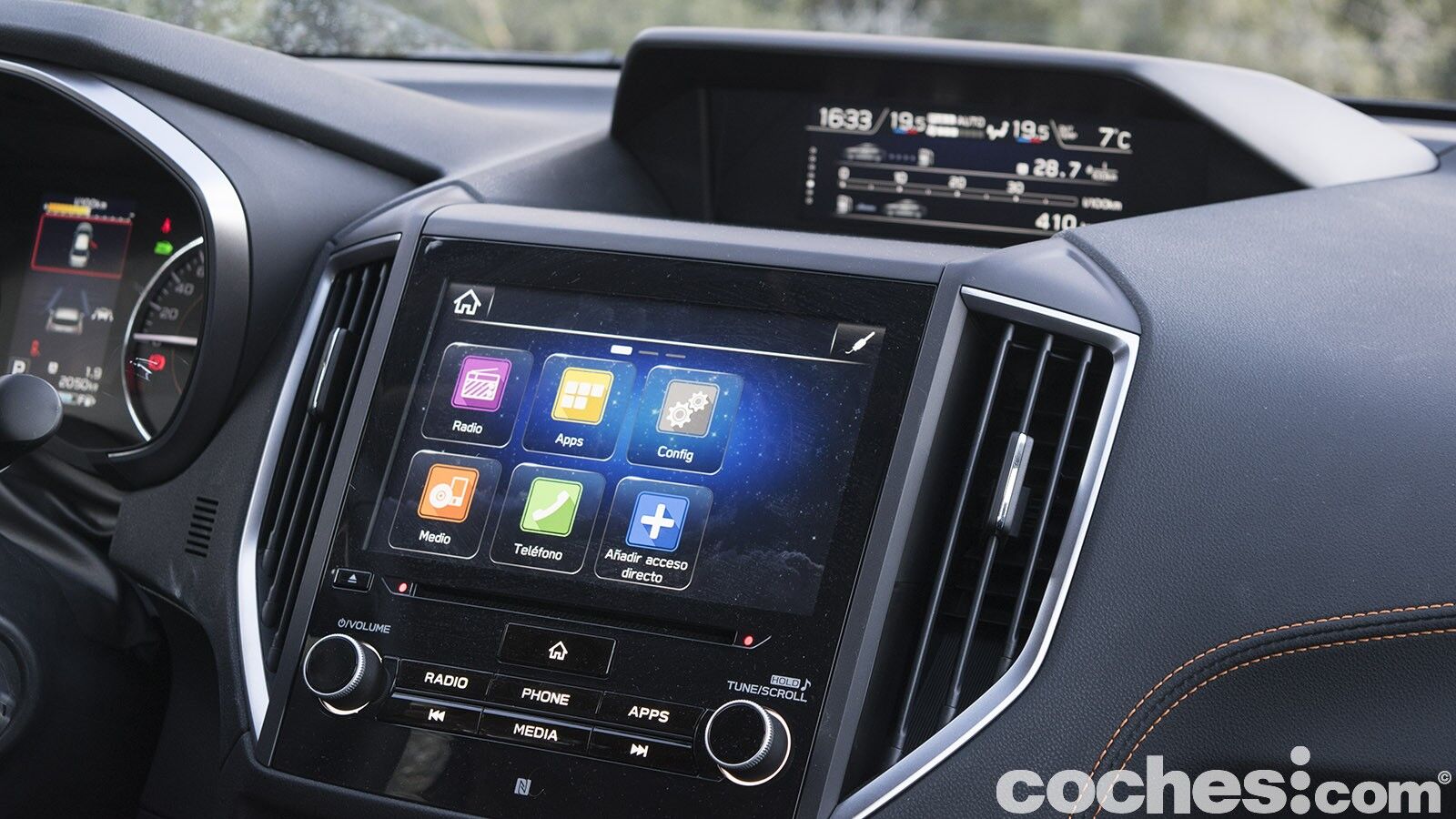 Para entender el equipamiento del Subaru XV hay que hacer distinción entre las dos mecánicas disponibles. Para el 1.6i se puede escoger entre tres acabados diferentes. El Sport ya arranca con llantas de 17 pulgadas, pantalla de 6,5 pulgadas, sensores de luz y lluvia, climatizador, asientos calefactados y todas las bondades del EyeSight, que explicaremos a continuación. El Sport Plus suma elementos como los faros LED direccionales, pantallas de 8 pulgadas, climatizador bizona, pedales de aluminio, barras de techo, retrovisores plegables o cámara de visión trasera.