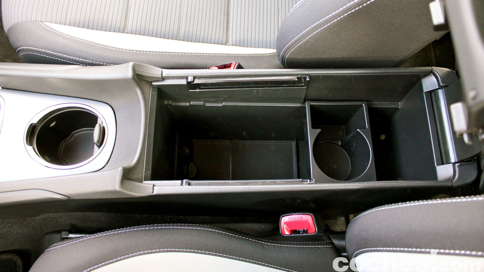Hay algunas cosas que no nos convencieron, como el espacio delante del cambio de marchas, con una protuberancia que impide dejar nada ahí (el lugar habitual donde dejar el móvil). Además de tener un difícil acceso por esa curiosa forma, no puede dejarse ahí nada porque los laterales están cerrados y los objetos pueden caerse. También se ha ubicado el freno de mano eléctrico en una posición extraña, escondido tras el volante.
