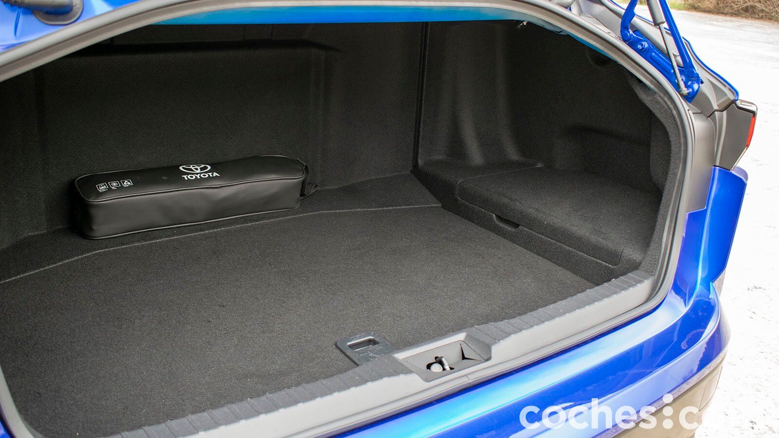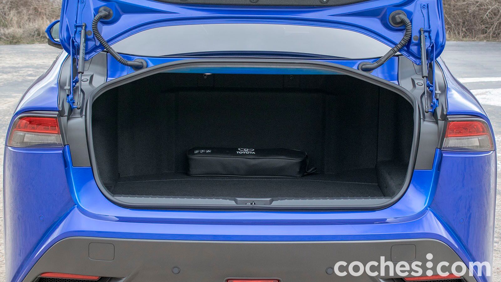 Si en la segunda fila de asientos ya intuíamos que los depósitos de hidrógeno eran los que limitaban el espacio, en el maletero pasa algo parecido. El Mirai tiene una capacidad de 321 litros, que también es menos de lo que se podía esperar de un coche de sus dimensiones. Por suerte, tiene unas formas muy cuadradas y regulares que hace que se pueda aprovechar toda su superficie, incluyendo dos huecos en los laterales que pueden ser muy útiles.