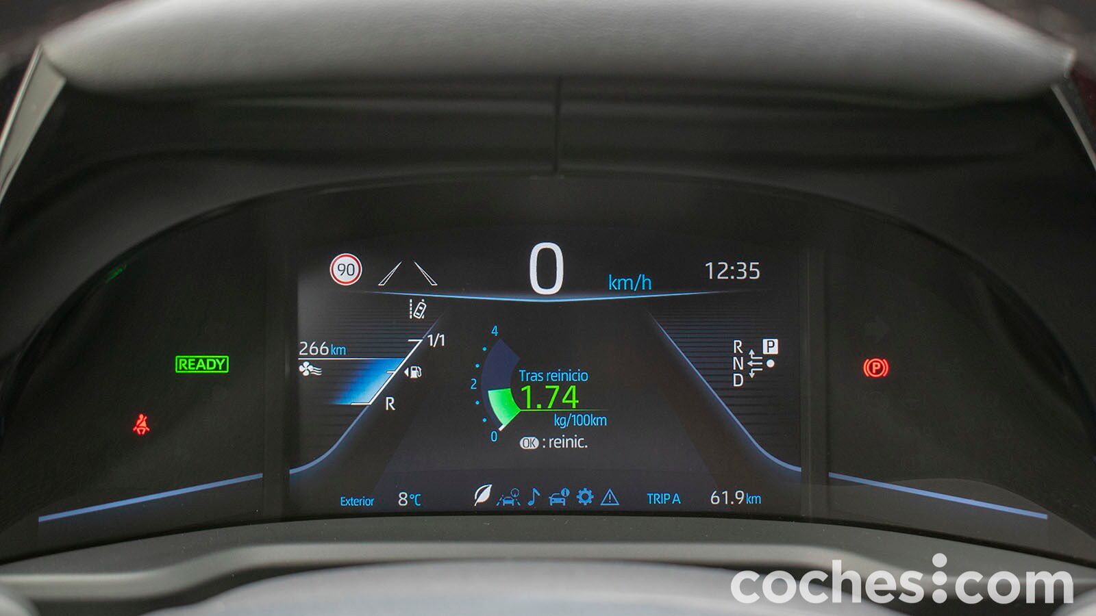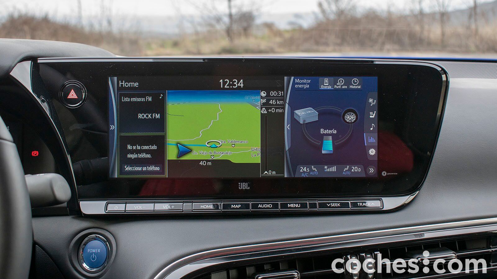 El sistema de asistencia activa en curva lo que hace es frenar ligeramente la rueda interior y dar más par a la exterior para minimizar el subviraje y mantener la trayectoria. Para redondear la experiencia de conducción, Toyota ha introducido un control de sonido activo que simula cómo sonaría un coche de combustión en función de lo que se pise el acelerador. La verdad es que es bastante discreto y no molesta, a pesar de que está claro que es artificial.