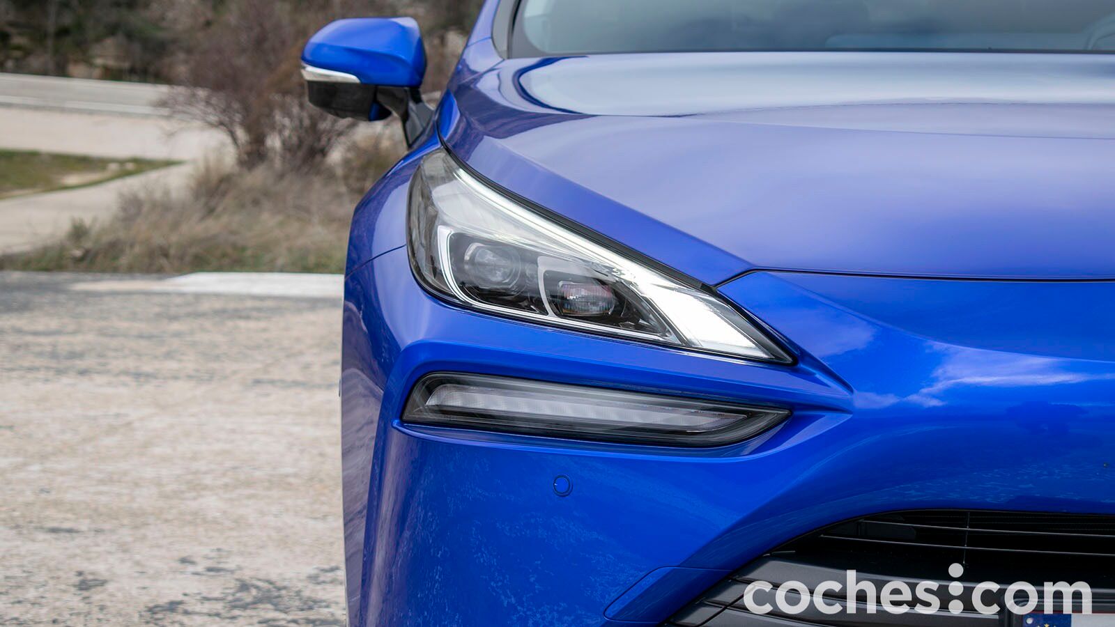 En el Mirai vemos un capó esculpido que integra a sus laterales unos alargados faros Bi-LED, que son los más grandes que haya montado la marca. Cuentan con luces diurnas separadas y entre ellos está el logotipo de Toyota. En los generosos pasos de rueda sobresalen unas llantas de hasta 20 pulgadas (19 pulgadas de serie) con diseño de turbina en nuestra unidad, que le dan un toque muy dinámico junto a esa silueta de berlina que busca tener formas de coupé.