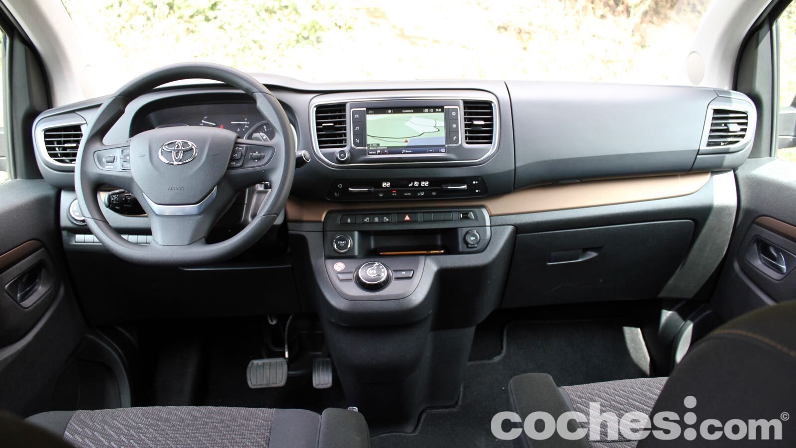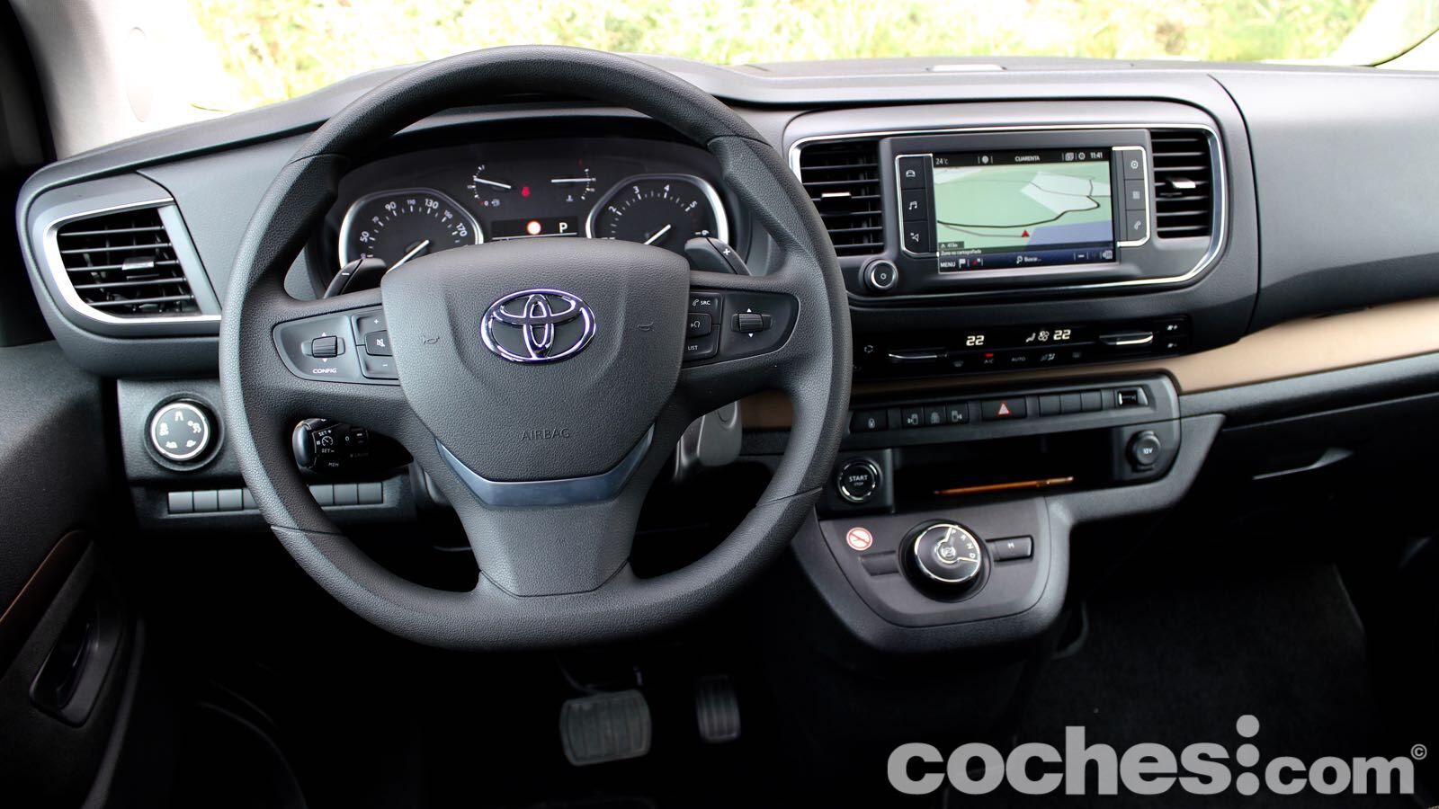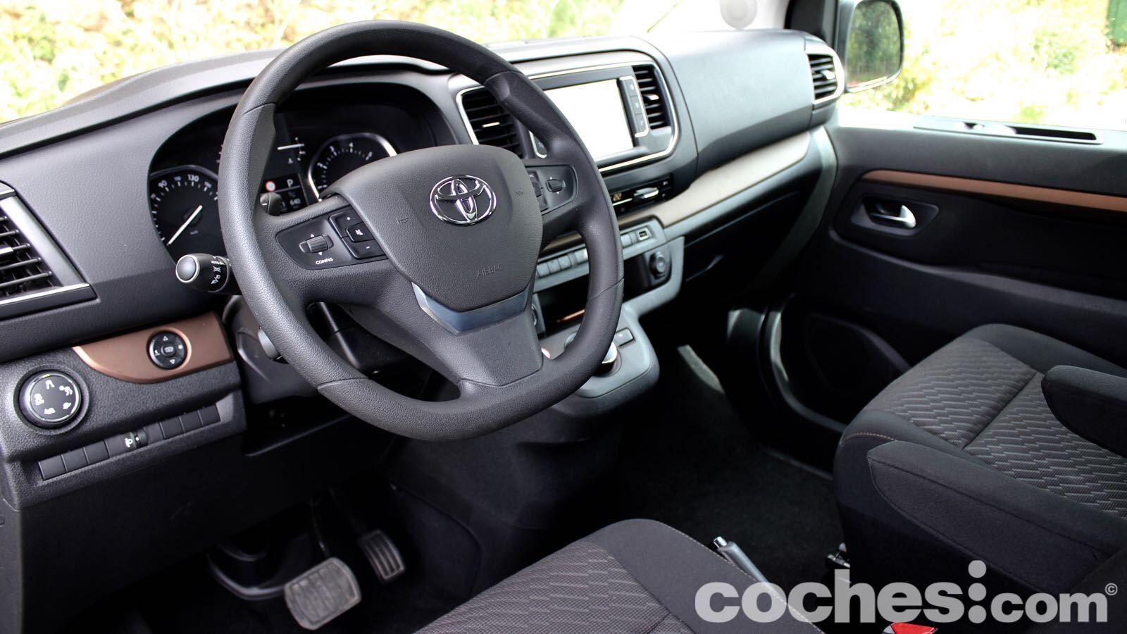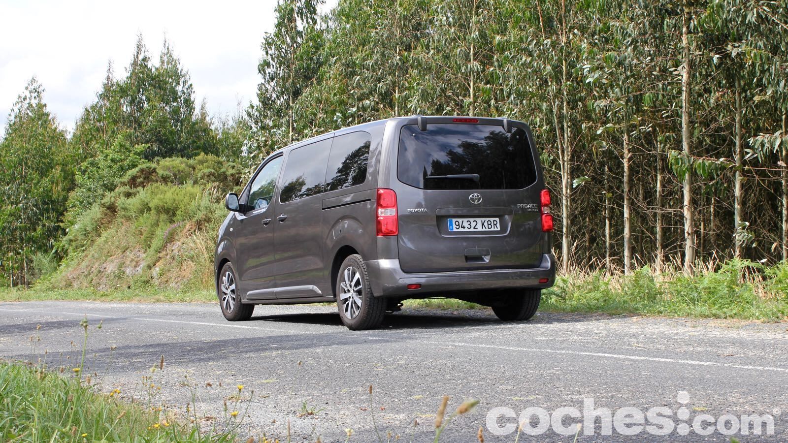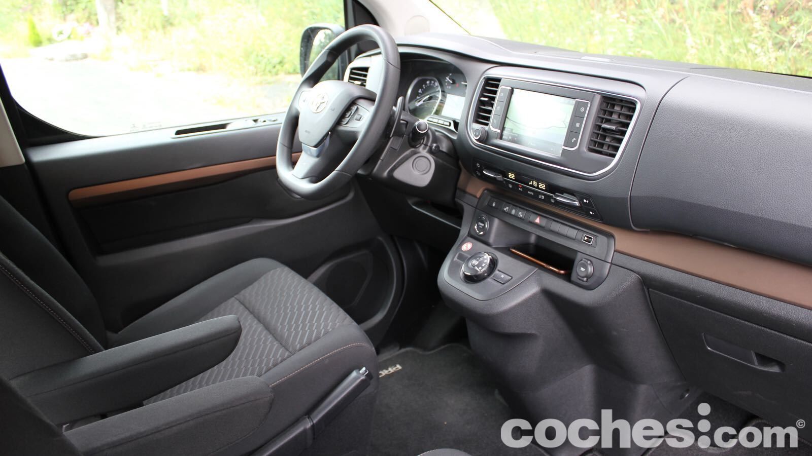 Nuestra unidad de prueba es una Proace Verso Family, el auténtico monovolumen de la gama para familias numerosas. Con ocho plazas de serie, es posible elegirla con las tres longitudes de carrocería y todos los asientos sobre raíles. Luce llantas de aleación de 17 pulgadas, cámara de visión trasera, o el Toyota Safety Sense, el conjunto de sistemas de seguridad que integra sistema de precoslisión con detección de peatones y frenada automática de emergencia, detector de vehículos en el ángulo muerto, alerta por cambio involuntario de carril, detector de señales de tráfico o un programador de velocidad activo.