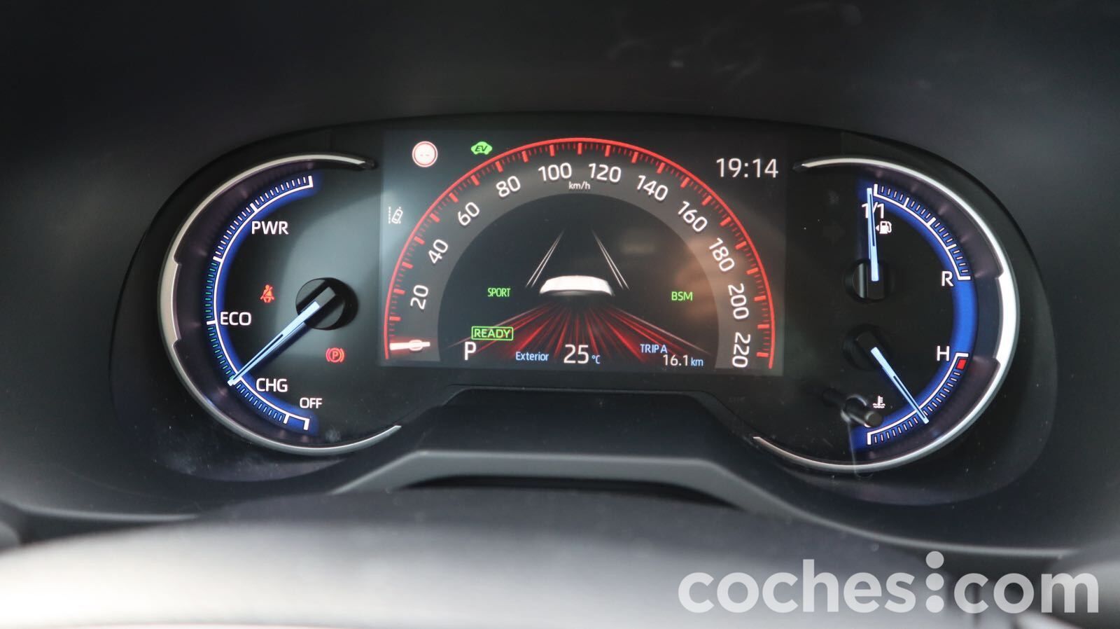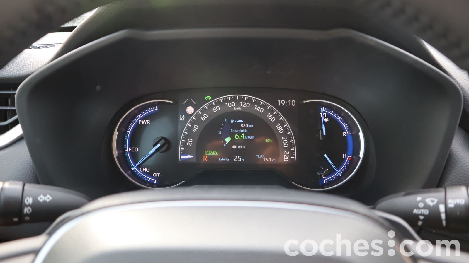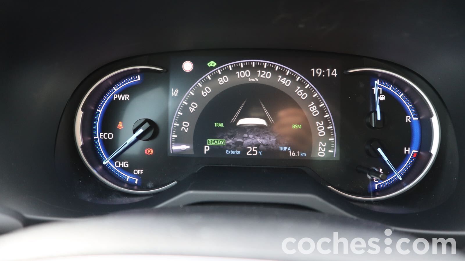 ¿Y fuera del asfalto? Pues si del RAV4 Hybrid decíamos que el modo Sport apenas se notaba en la sensibilidad del acelerador, pues no cambiaba mucho la filosofía del coche, aquí gana el modo Trail, que estrena el control de automático de diferencial de deslizamiento limitado para garantizar una mayor tracción en superficies de menor adherencia.