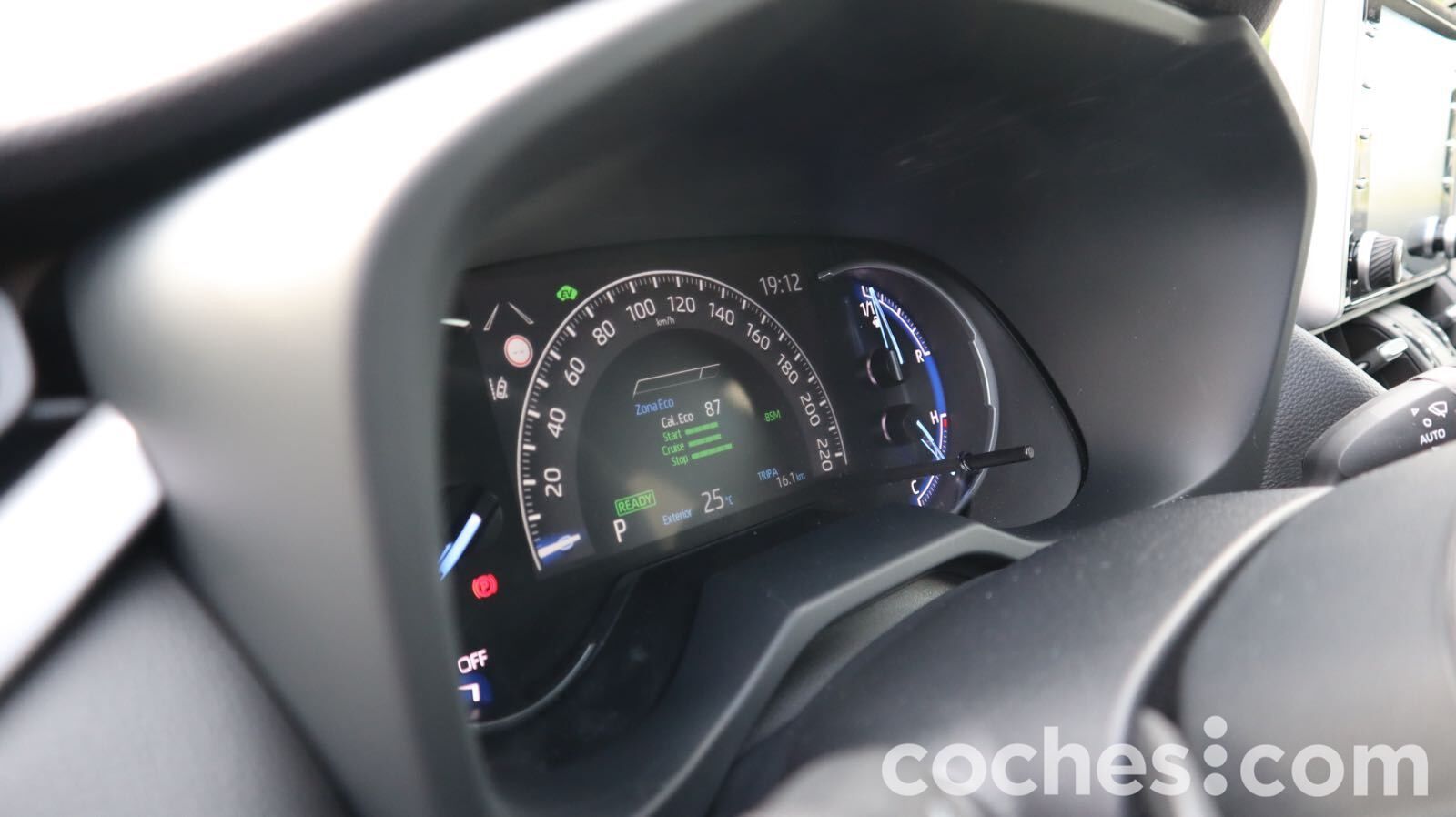 No hay sopresas en la instrumentación, con una pantalla a color central (poco configurable y personalizable, eso sí), con relojes semiesféricos analógicos para los niveles y el potenciómetro del sistema híbrido. Es de fácil lectura y se controla sin muchos agobios desde los mandos del volante.