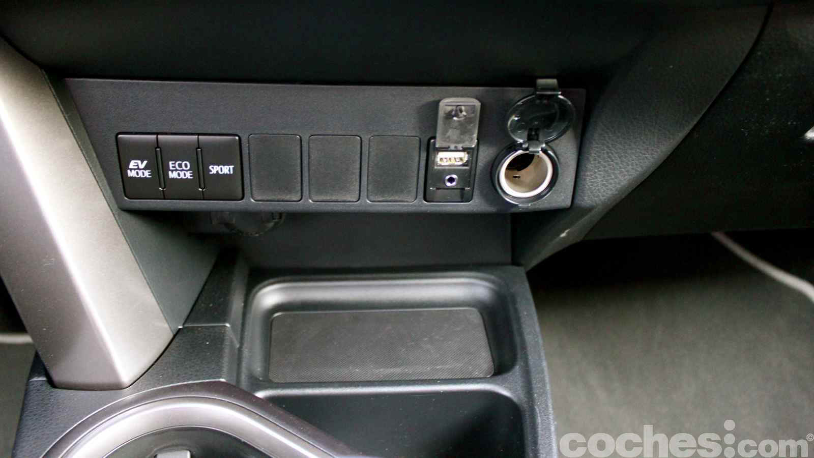 El puesto de conducción suma la pantalla central de 7 y otra de 4,2 tras el volante. Junto a ella aparece un potenciometro y no hereda el selector del cambio de los Prius o Auris. En cuanto al espacio interior es calcado al resto de los RAV4.