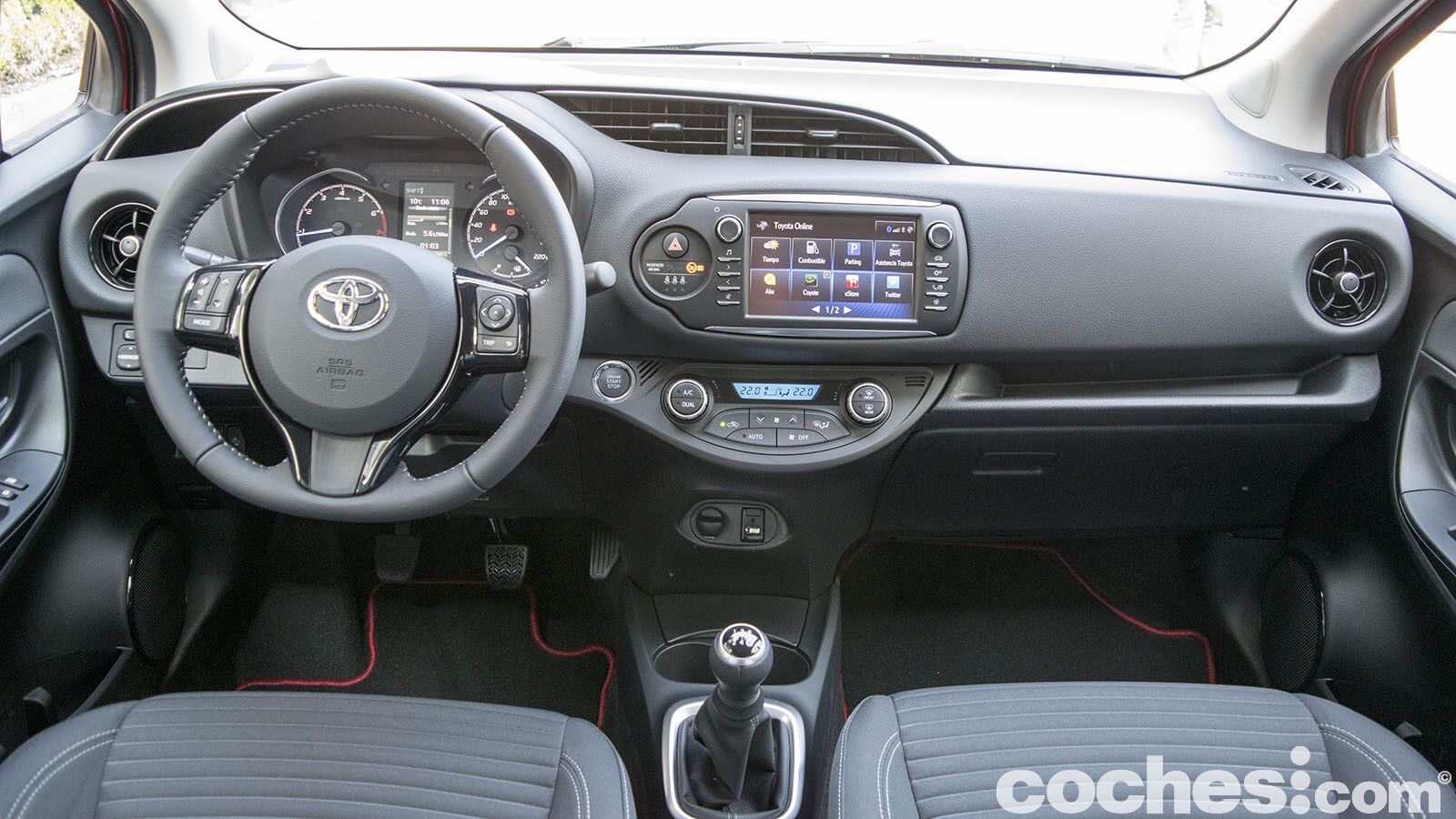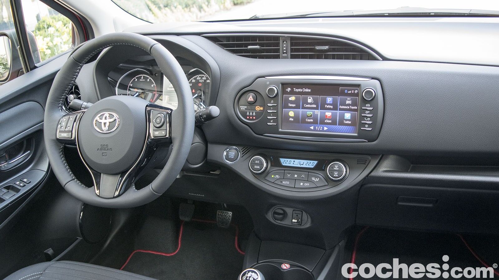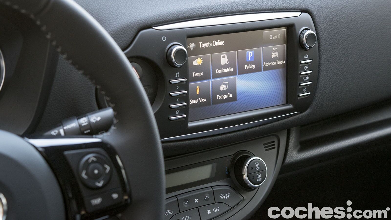 El equipamiento del Toyota Yaris 2017 está distribuido en cuatro niveles de acabado. El City es el más básico y cuenta con la novedad de integrar el Toyota Safety Sense. Además de las ayudas a la conducción cuenta con llantas de 15 pulgadas, climatizador manual, faros antiniebla delanteros o sensor de lluvia. Por encima está el acabado Active que suma el sistema multimedia Toyota Touch 2, control de crucero y, por primera vez la pantalla multi-información TFT de 4,2 pulgas y el Toyota Safety Sense con reconocimiento de señales de tráfico.