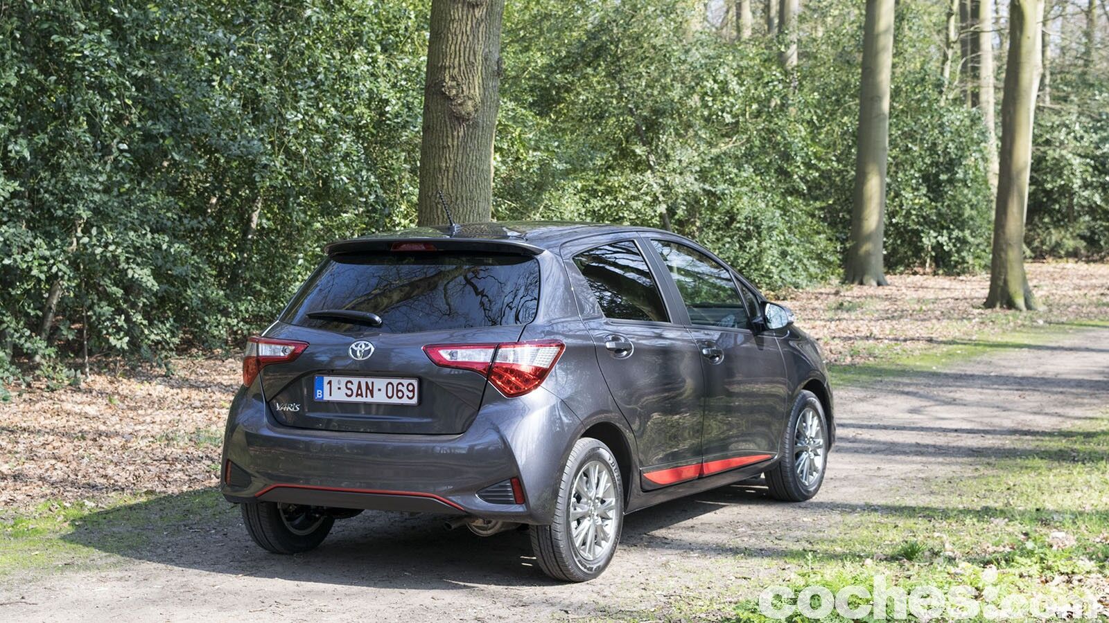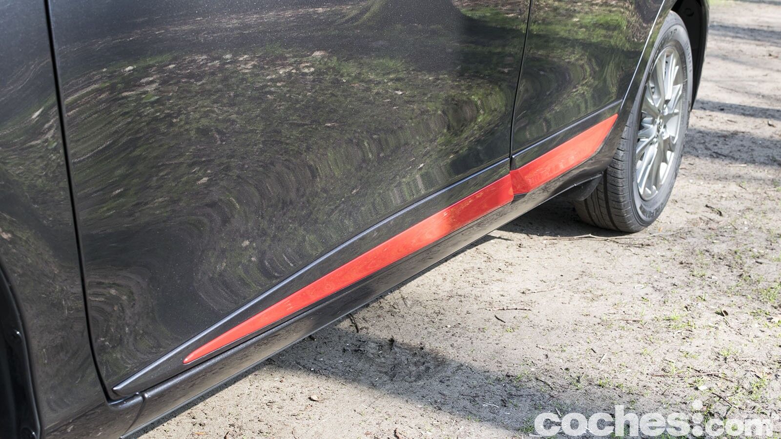 El lateral probablemente sea la zona que menos cambia en el Yaris. En la parte inferior aparece una nueva moldura que puede ir en varios colores según lo que elijamos. Precisamente esa es una clave de este utilitario: las posibilidades de personalización. Las llantas de 15 y 16 pulgadas tienen tres nuevos diseños y pueden ser bitono. También la carrocería puede ir en dos colores, como en el anterior modelo, y tiene una paleta formada por 10 colores con dos novedades (Azul Nébula y Rojo Tokio).