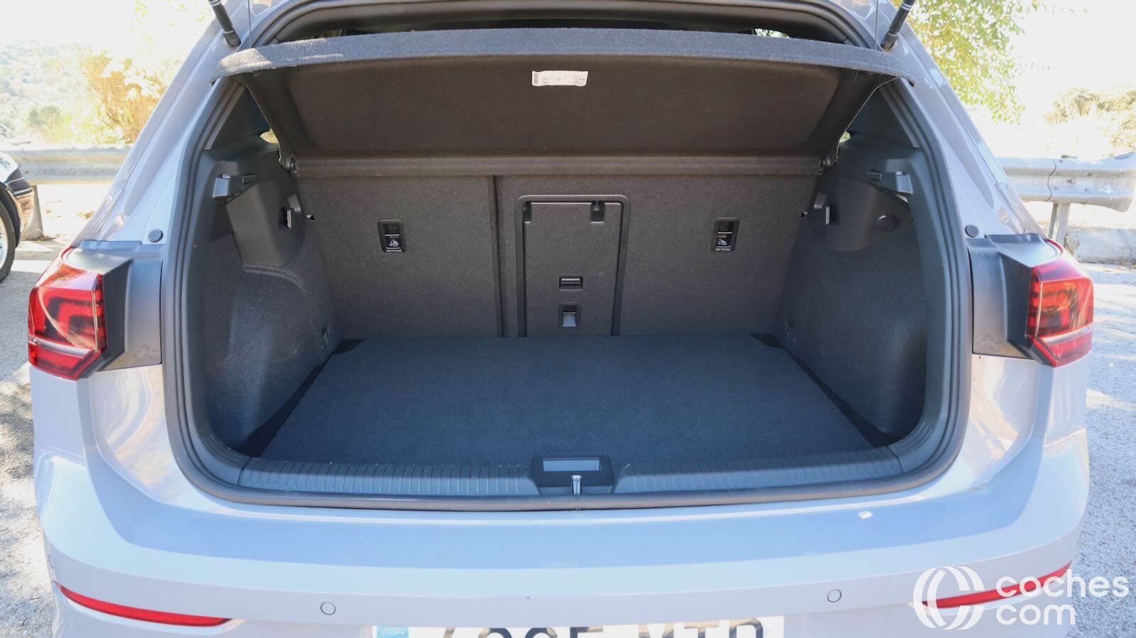 El Golf R-Line eTSI ofrece un maletero de 380 litros, correcto pero lejos de la referencia del segmento. Para cinco plazas, cumple con el equipaje de una familia tipo, aunque el el Peugeot 308 (412 litros) o el Kia Ceed (395 litros) le superan en capacidad bruta.