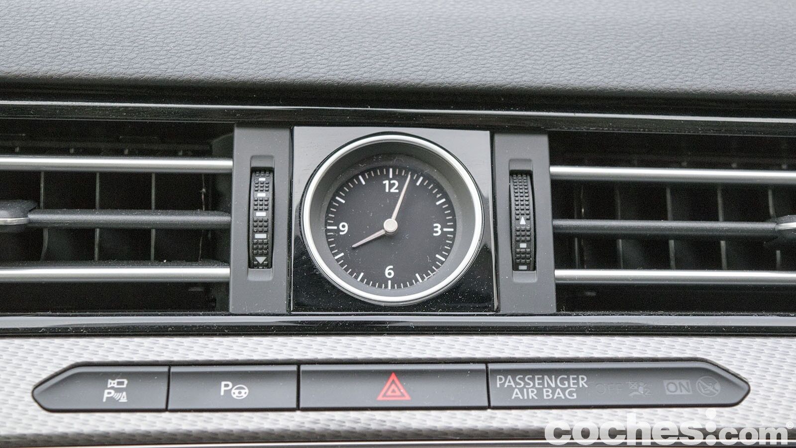 En el exterior era más fácil distinguir el Passat Alltrack de un Passat Variant ‘normal’, pero en el interior será casi imposible. A excepción de unas inscripciones con el nombre del modelo, la tapicería específica o el modo off road en el Drive Profile Selection; el resto es todo igual. Nos encontramos de esta forma con un salpicadero muy horizontal con un reloj analógico que da el toque retro y con una moldura frente al copiloto que une las salidas del aire imitando su forma.