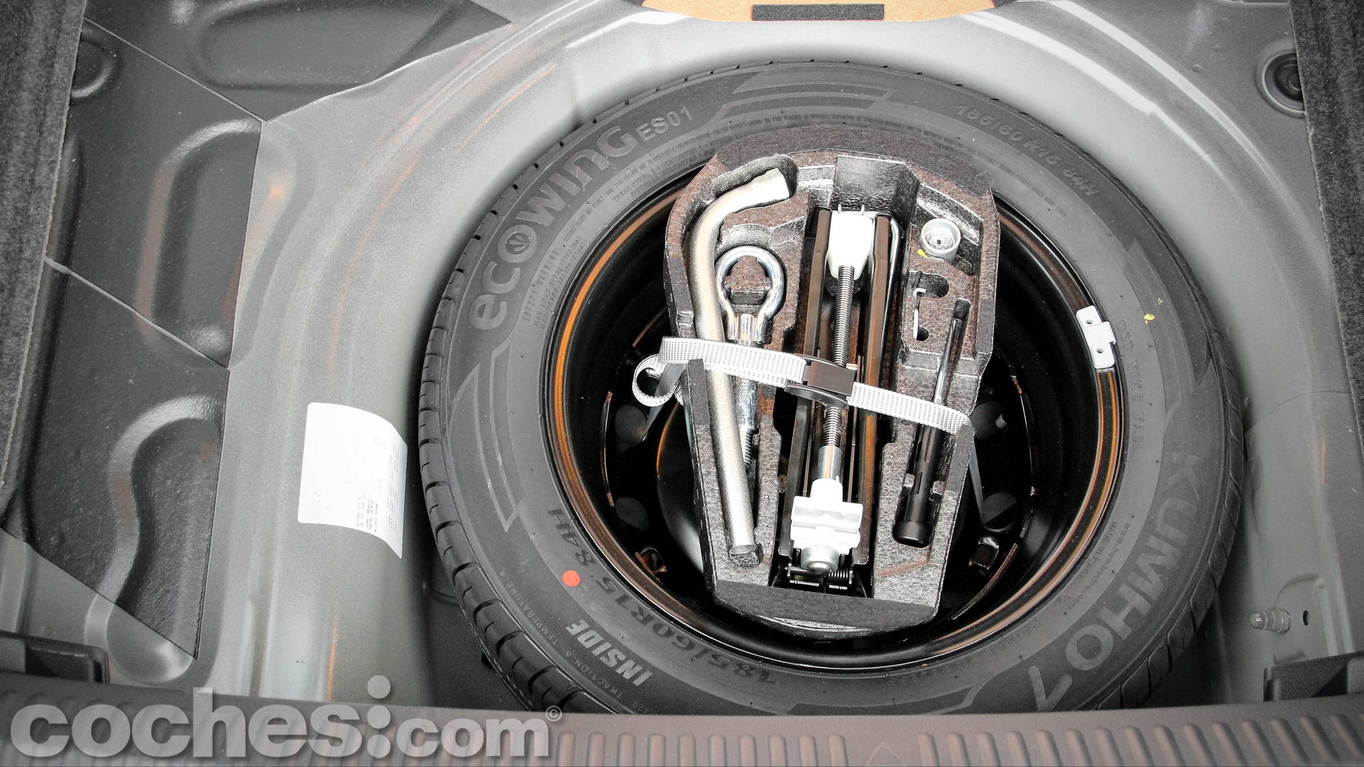Bajo el piso nos encontramos con una rueda de repuesto temporal, así como con las herramientas necesarias en caso de tener que cambiar un neumático.