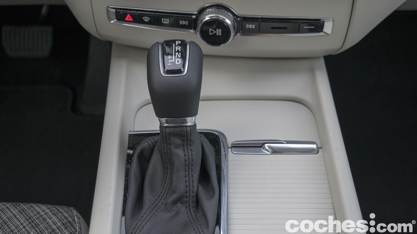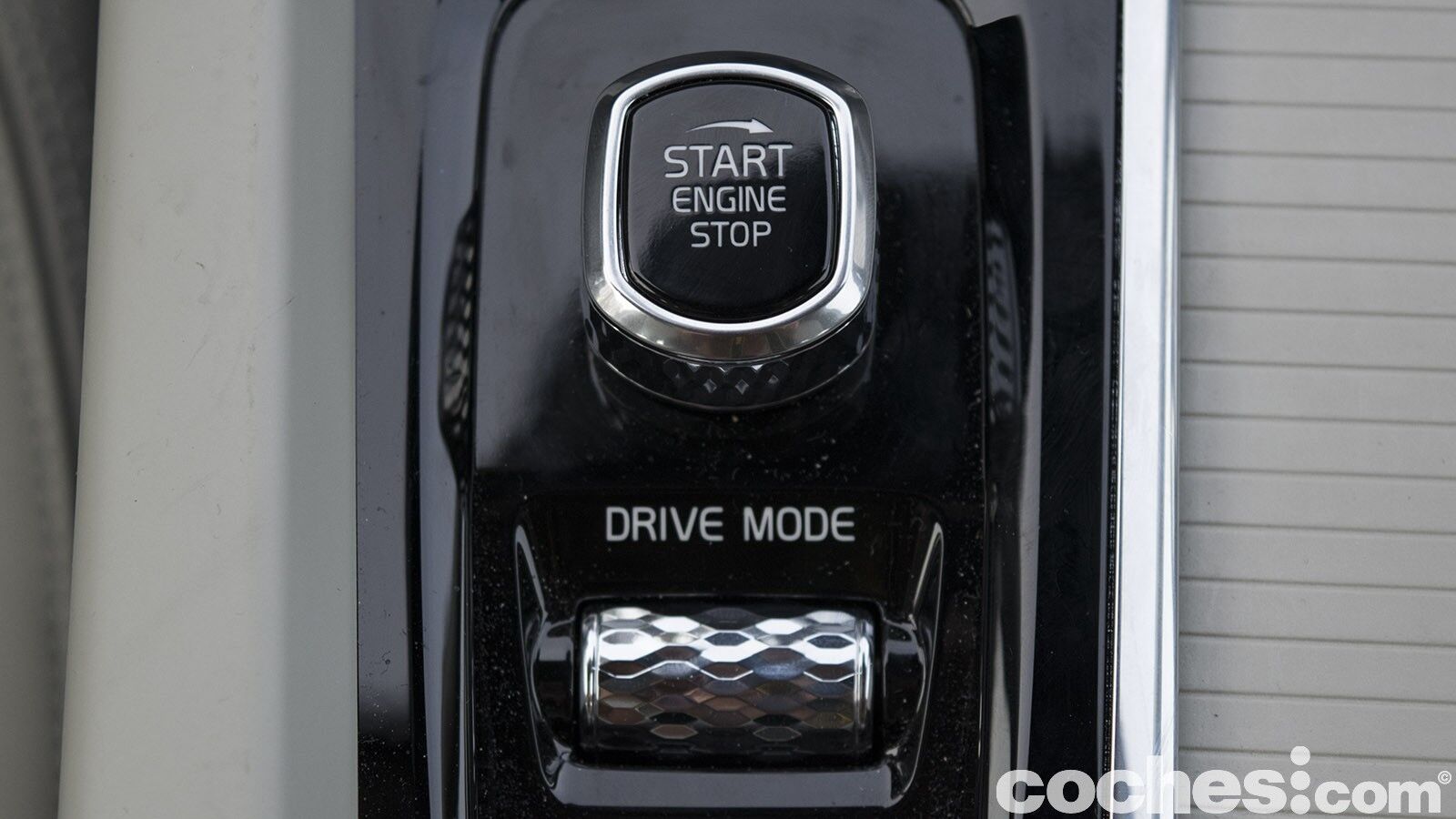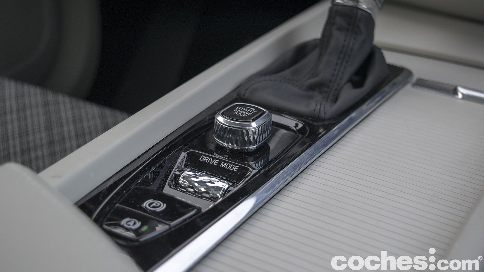 Una de las particularidades que llaman la atención en los Volvo es la parte baja de la consola central. Justo por detrás de la palanca de cambios encontramos una pequeña botonera con varias funciones. Para arrancar el motor hay que girar ese peculiar mando de forma hexagonal y tacto refinado. El mismo patrón sigue la rueda de los modos de conducción (Drive Mode), mientras que por detrás están el botón del freno de estacionamiento y el del Start&Stop.