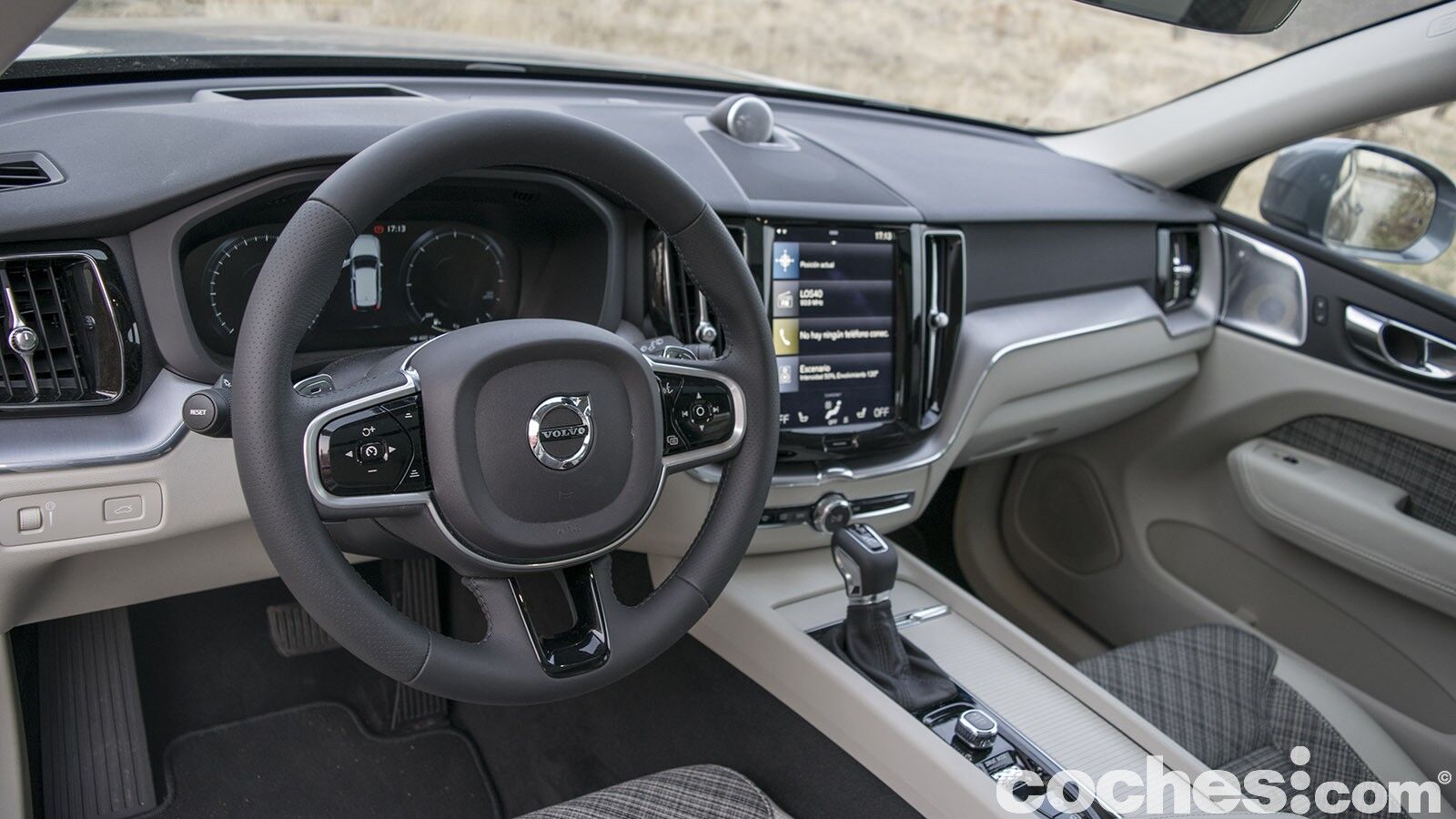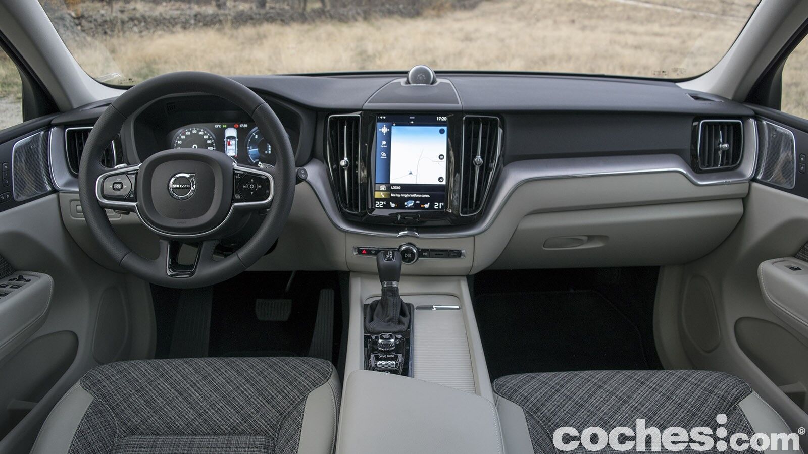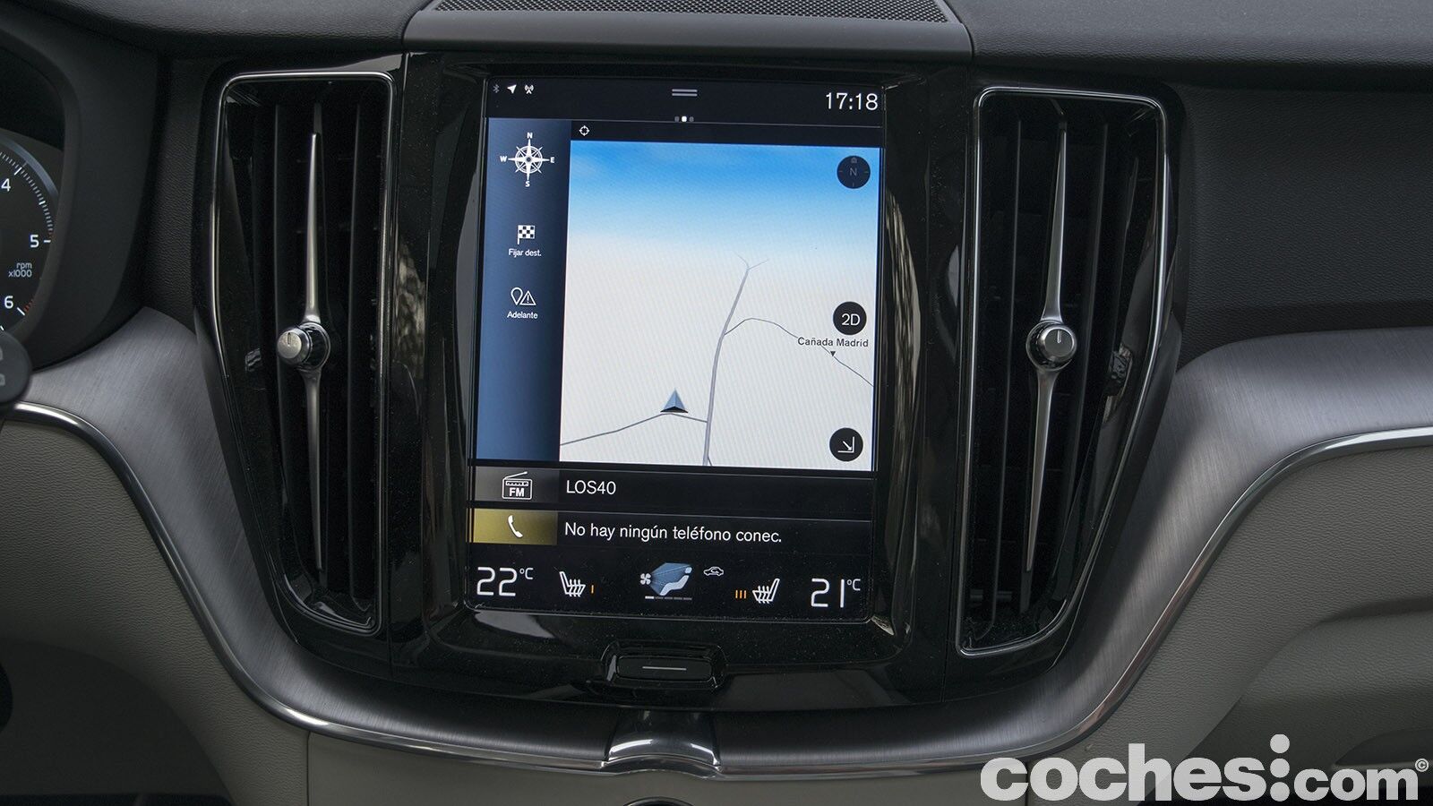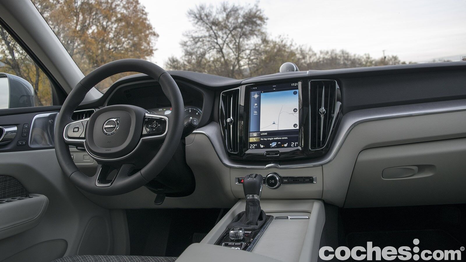 El equipamiento del Volvo XC60 es bastante completo incluso de serie. El acabado básico, el que equipa nuestra unidad, es el Momentum. Cuenta con llantas de 18 pulgadas, iluminación LED, climatizador bizona con Clean Zone, pantalla táctil de 9 pulgadas, asientos delanteros calefactados y con regulación eléctrica, sensores de aparcamiento, portón trasero eléctrico y ayudas a la conducción City Safety que incluye mantenimiento de carril o frenada de emergencia.