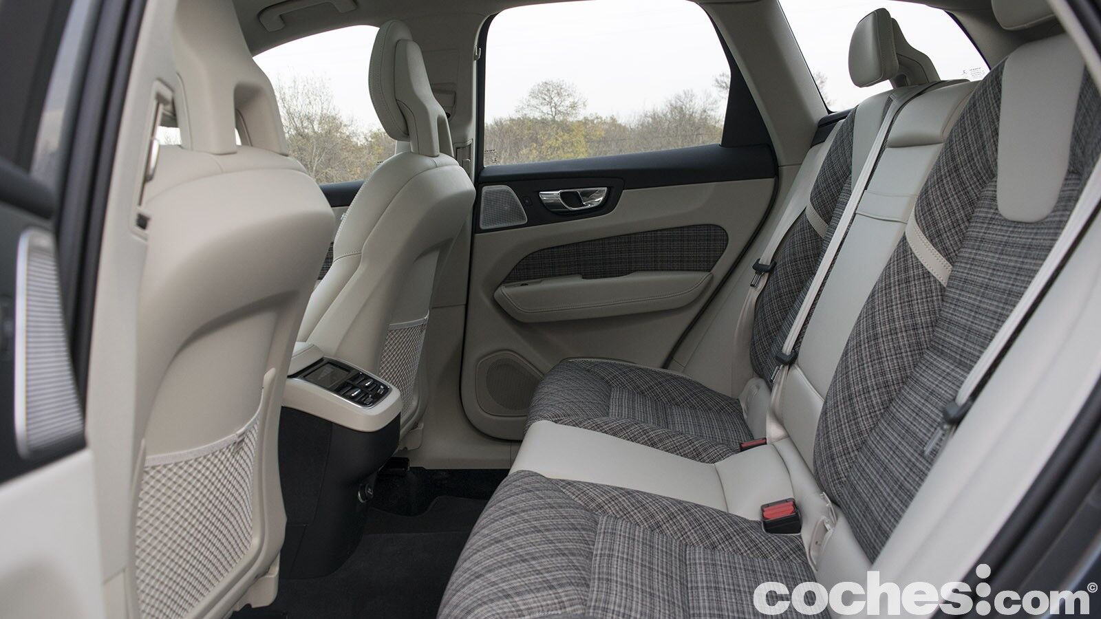 En términos de habitabilidad, el Volvo XC60 también saca pecho. Gracias a la plataforma SPA y a las nuevas dimensiones, es bastante más amplio que su antecesor. Ya se nota en las plazas delanteras, que además ofrecen una posición de conducción inmejorable y unas formas que hacen que los kilómetros no pasen factura. Mención aparte para sus peculiares reposacabezas y la forma de abatirlos.