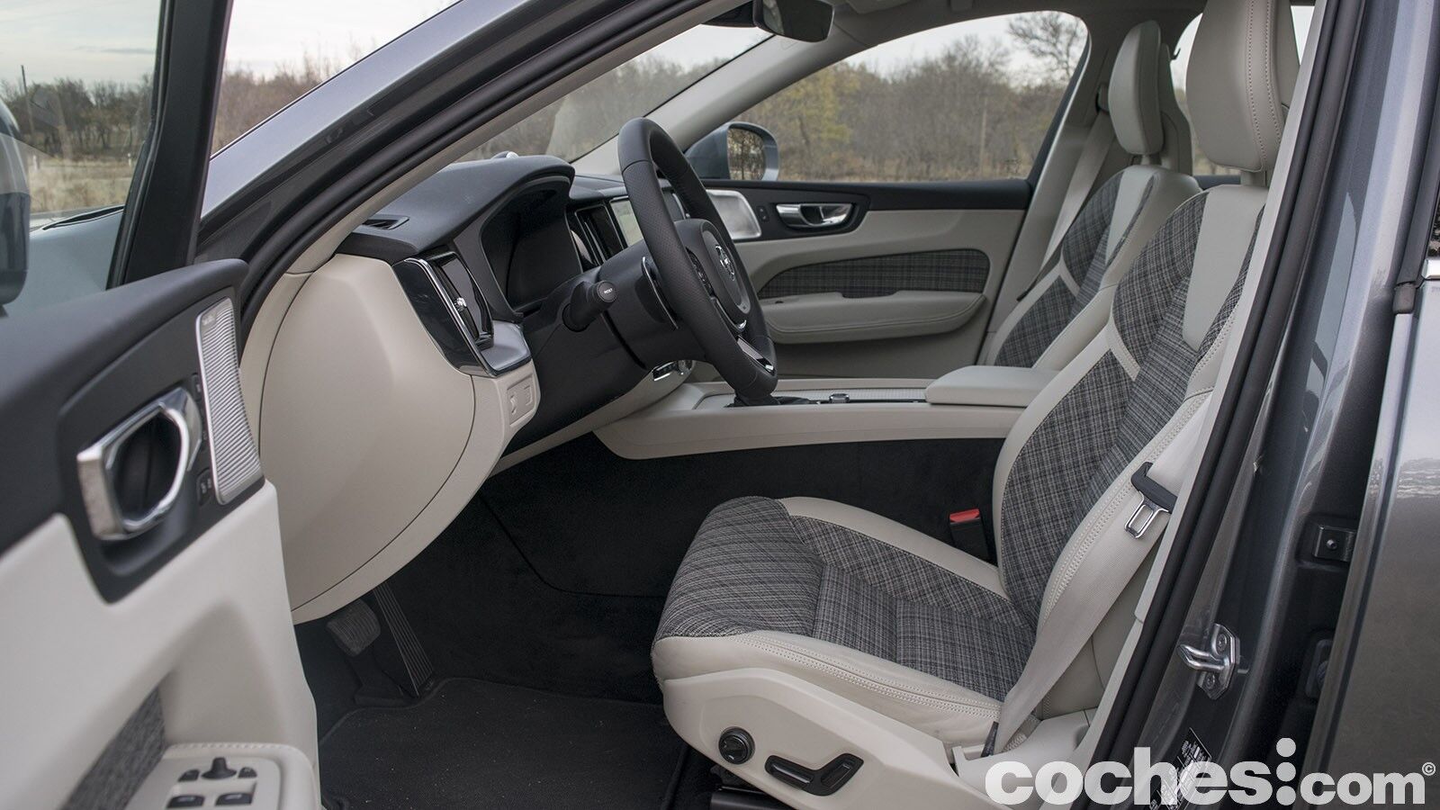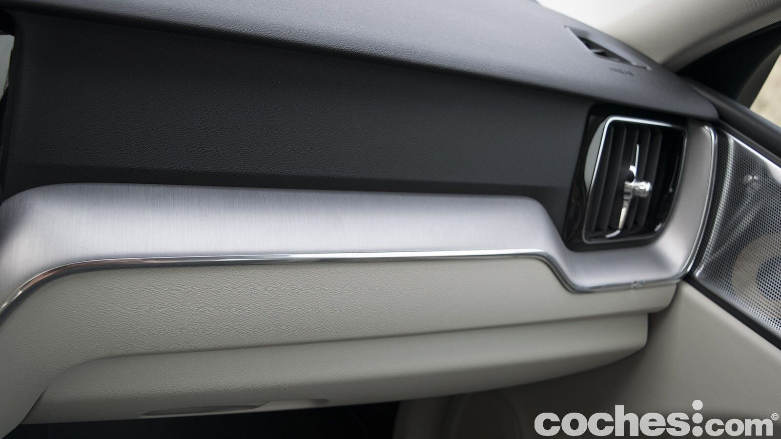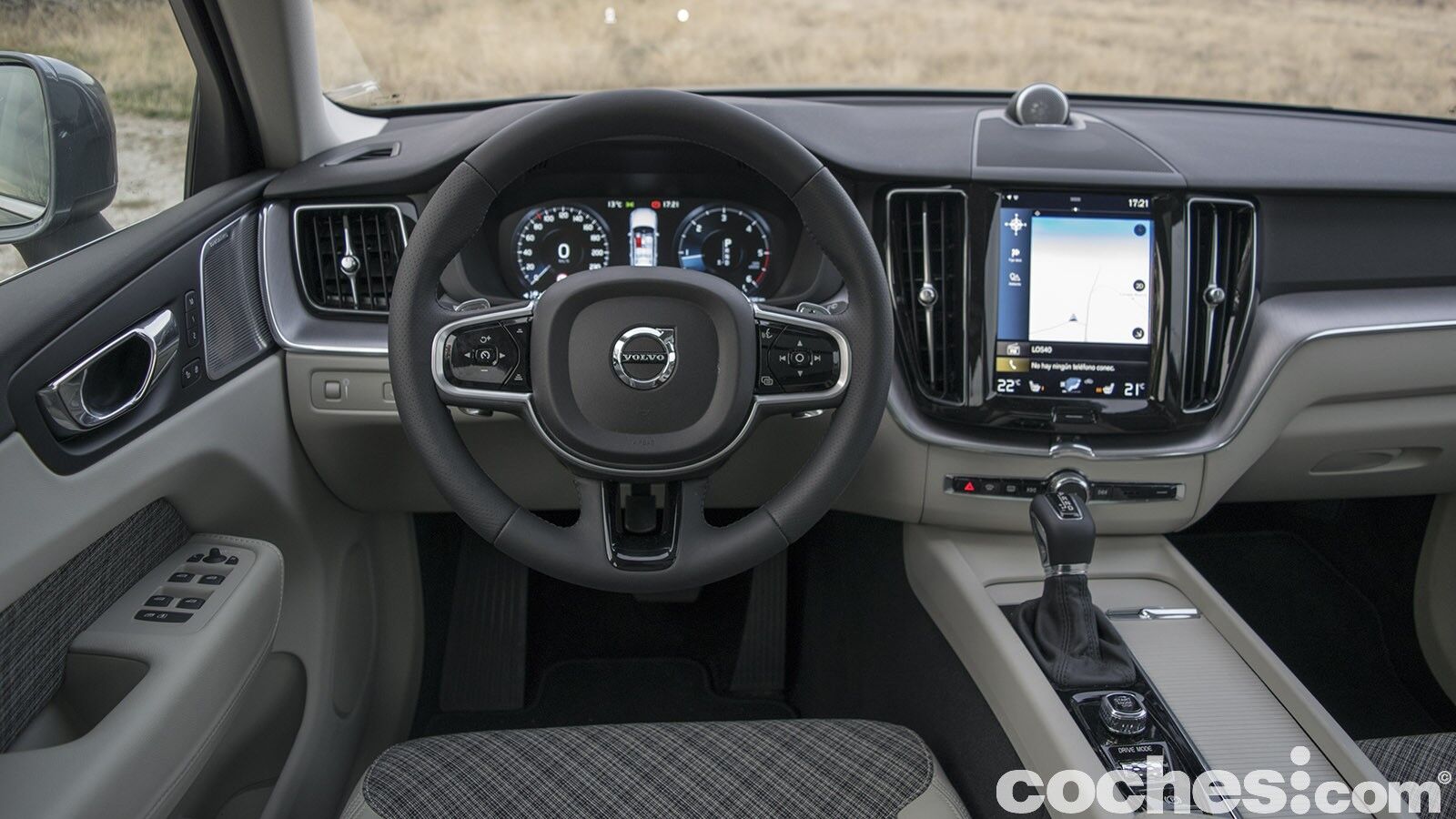 Porque hay que destacar que el cuidado por detalles es muy elevado en este Volvo XC60. Los suecos, sin duda, entran en el podium en cuanto al buen hacer de sus interiores. En este caso no podía ser menos y, a pesar de contar con el acabado básico, destaca en este apartado. Aunque tiene un aspecto peculiar la tapicería de tela tiene un tacto sobresaliente, las inserciones metálicas le dan un toque distintivo y los plásticos que aparecen son blandos y agradables al tacto. Incluso las alfombrillas tienen una anchura y mullido distinguidos.