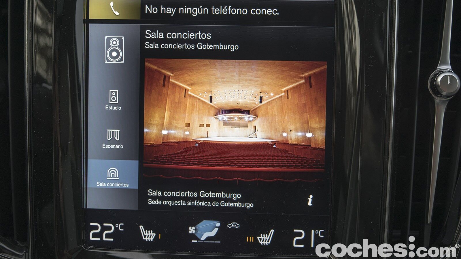 A pesar de venir con el acabado más básico, nuestra unidad montaba bastantes elementos de la lista de opcionales. La tecnología la ponía el sistema multimedia Sensus, con su conectividad avanzada y conexión Wi-Fi, o la cámara de 360º. El confort venía de la mano de los asientos calefactados y ventilados (y solo calefactados detrás) o de la climatización de cuatro zonas. La distinción era para el sistema de sonido Bowers & Wilkins con 19 altavoces (incluido el del salpicadero), 1.400 W de potencia y la capacidad de reproducir el sonido de la Sala de Conciertos de Gotemburgo.