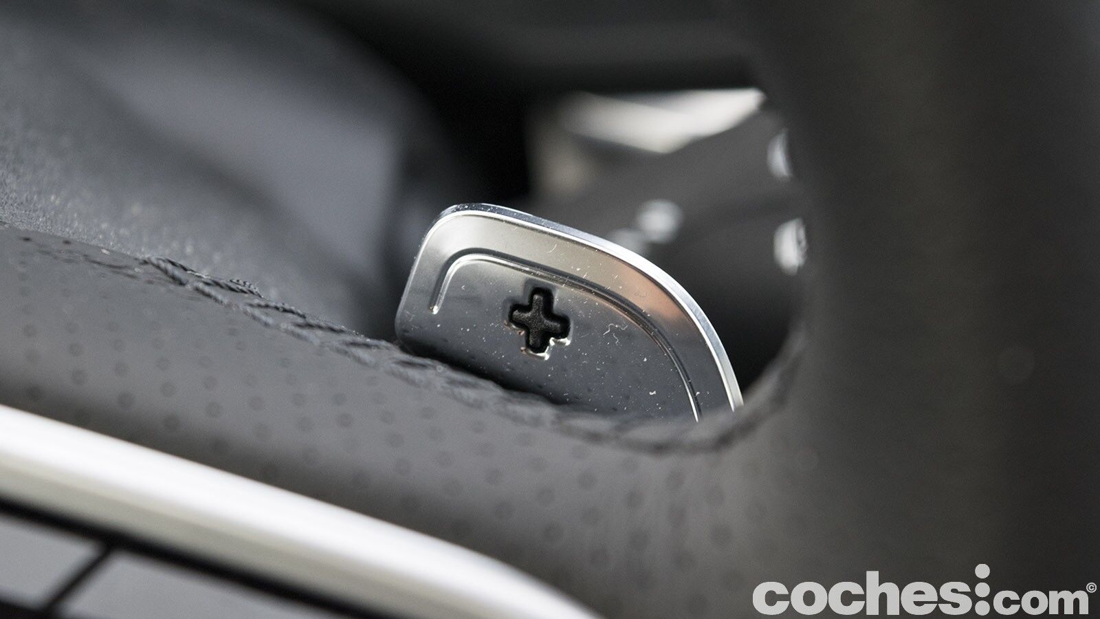 La combinación con el cambio automático de convertidor de par y ocho velocidades también es un acierto. Es una caja bastante rápida y que hace unas transiciones muy suaves. Además puede adaptar su funcionamiento a los modos de conducción o nos permite cambiar a través de las pequeñas levas metálicas en el volante. Para seleccionar el modo tenemos la ruleta, pero para el resto de funciones, incluyendo la climatización, tenemos que recurrir a la pantalla. Eso hace que se desvíe demasiado la atención en marcha.