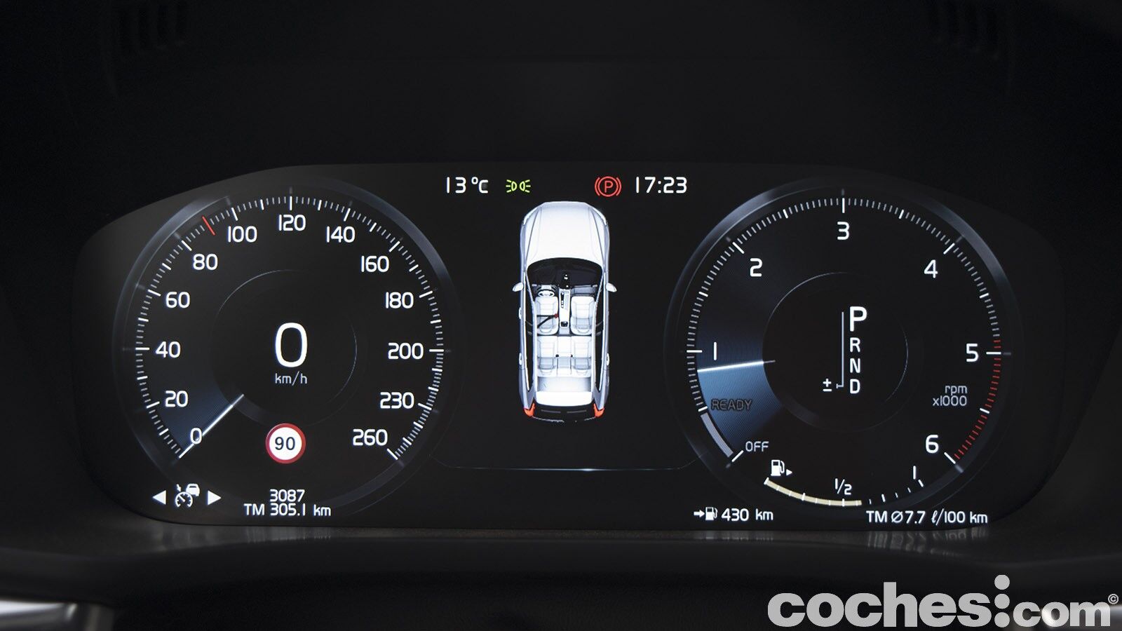 Desde el puesto del conductor tenemos acceso a un volante multifunción de tacto y envergadura exquisitos. A través de él, alcanzamos a ver otra de las grandes novedades del XC60, la instrumentación digital que se vale de una pantalla de 12,3 pulgadas para mostrar con precisión y a nuestro gusto todo tipo de datos. Para éste propósito también contaremos con la ayuda de un Head-Up Display que consigue que no sea necesario apartar la vista de la carretera.
