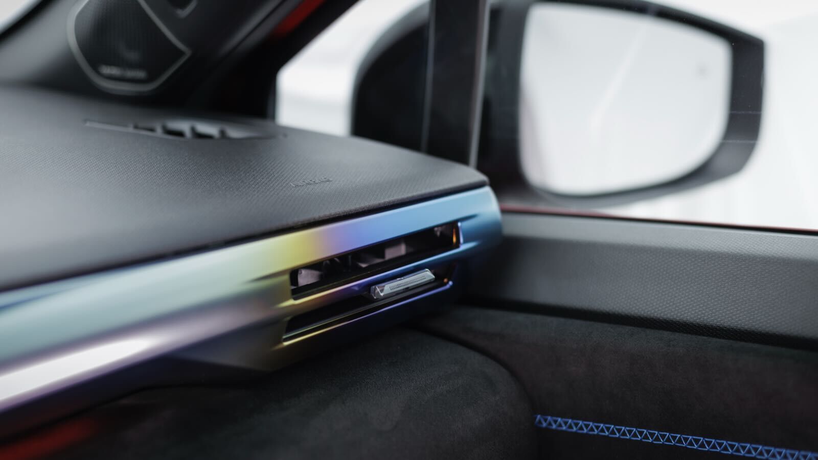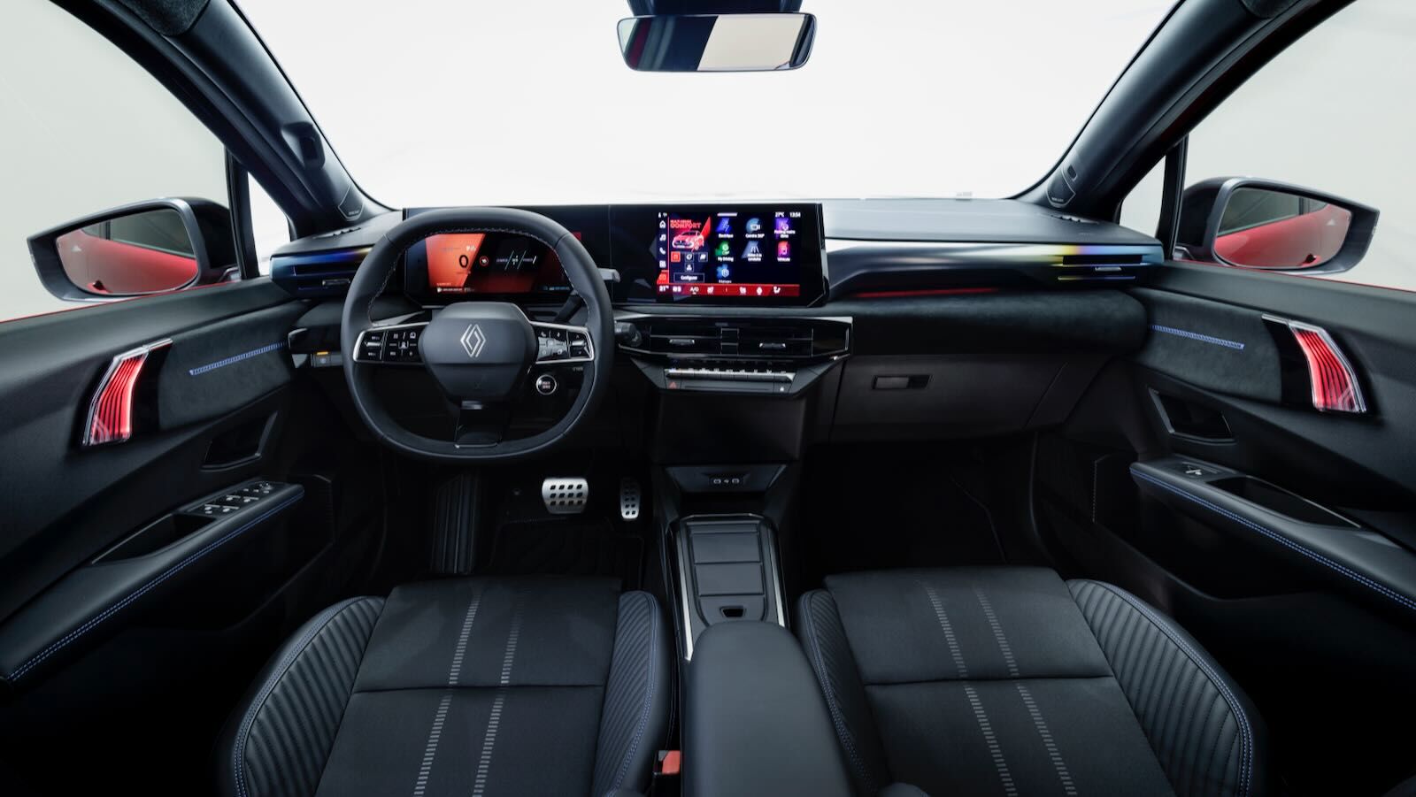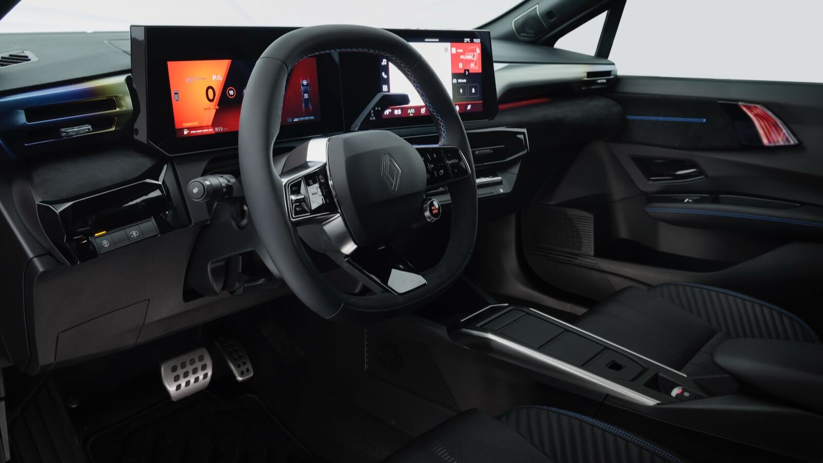 El habitáculo da también un salto cualitativo monumental. La apuesta por la mejora de materialesse percibe en el salpicadero puede vestirse con textil retroiluminado con iluminación ambiental de 48 colores (o Alcantara en la versión esprit Alpine).