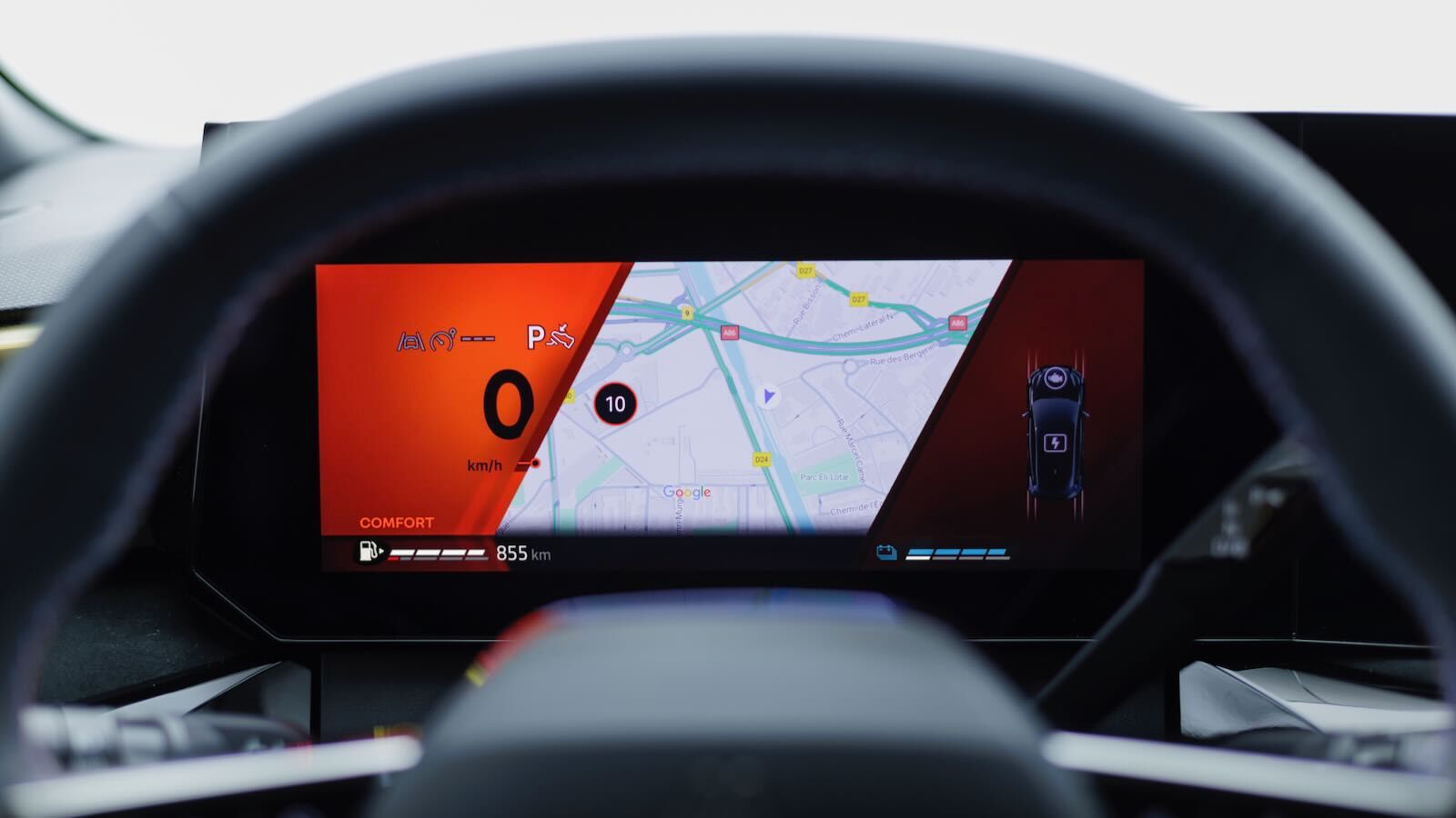 La doble pantalla de 10,1 pulgadas en forma de V, orientada hacia el conductor, domina un cuadro de mandos de aireadores con pintura metalizada degradada. El volante ha reducido los giros entre topes para una conducción más ágil e integra el botón para seleccionar los modos de conducción Multi-Sense.