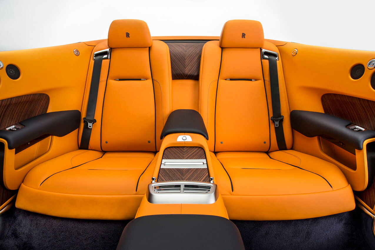 El interior cuenta con espacio suficiente para cuatro adultos, que irán sentados en asientos individuales. El conducto tendrá a su disposición un Head-up-Display que proyecta información en el parabrisas, y un sistema de sonido fabricado por Bespoke en exclusiva para el Rolls-Royce Dawn que se controla con un mando giratorio con panel táctil, que evita tener que tocar (y manchar) la pantalla.