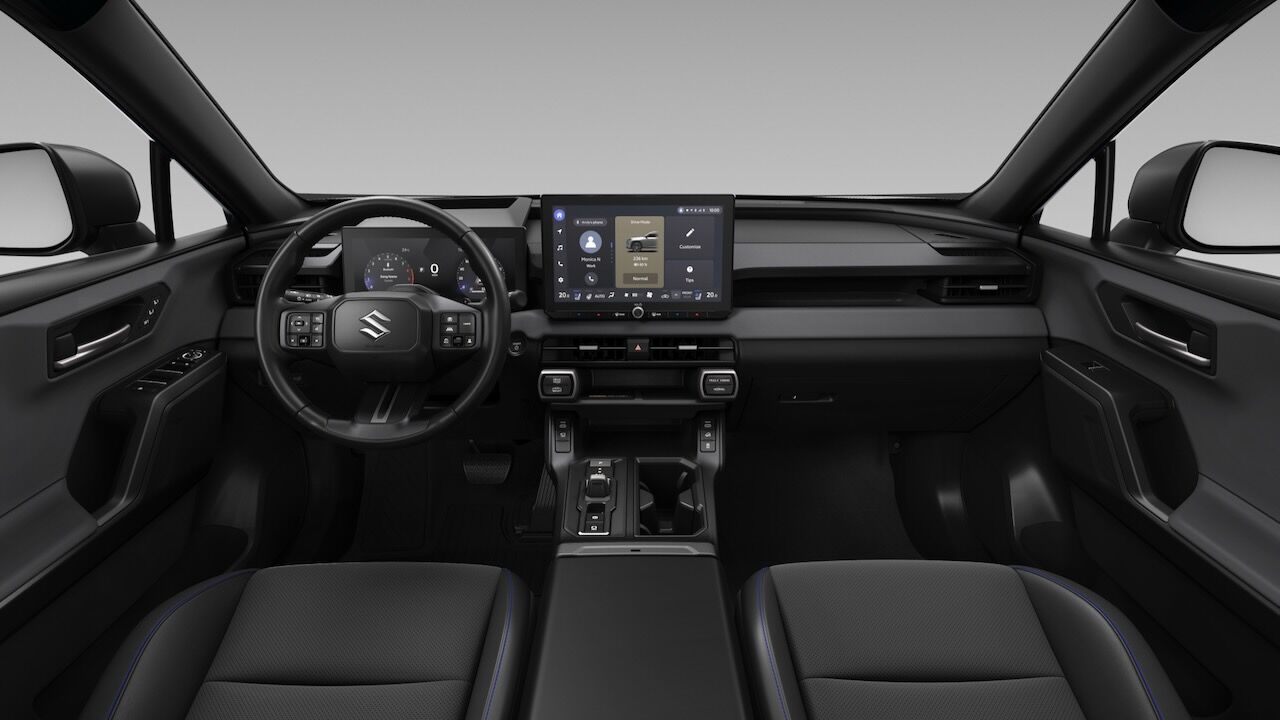 El interior del Suzuki Across presenta una arquitectura renovada denominada «en isla», que busca agrupar los controles de forma lógica. El protagonismo tecnológico recae en dos nuevas pantallas: un cuadro de instrumentos digital de 12,3 pulgadas personalizable tras el volante y una pantalla táctil central de 12,9 pulgadas para el sistema de infoentretenimiento, que gestiona la navegación, el audio y el climatizador. Además, incorpora un Head-Up Display (HUD) que proyecta información relevante en el parabrisas.
