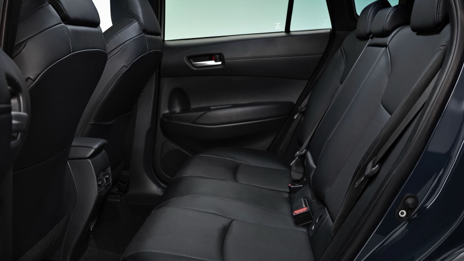 - Corolla Cross GR Sport: La variante deportiva tiene una dirección más ágil y una suspensión más firme rebajada 10 mm, además de un modo de conducción Sport exclusivo. Su aspecto varía respecto a otras variantes con elementos específicos como llantas negras de aleación de 19 pulgadas, parrilla delantera diferenciada, logos en negro brillante, cristales traseros oscurecidos, techo solar practicable Toyota Skyview o la pintura Storm Grey. En el interior, asientos con tapicería de cuero sintético con costuras en rojo calefactables