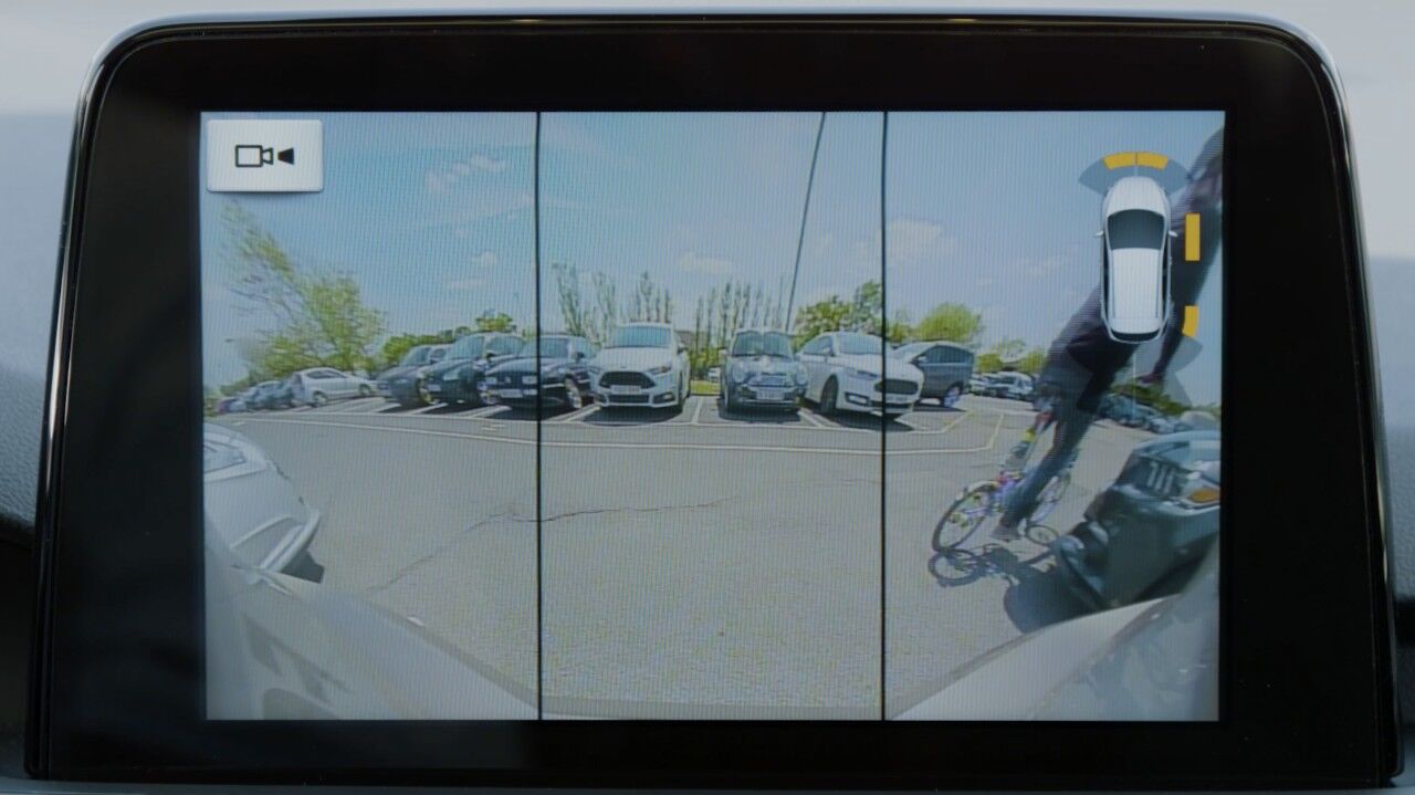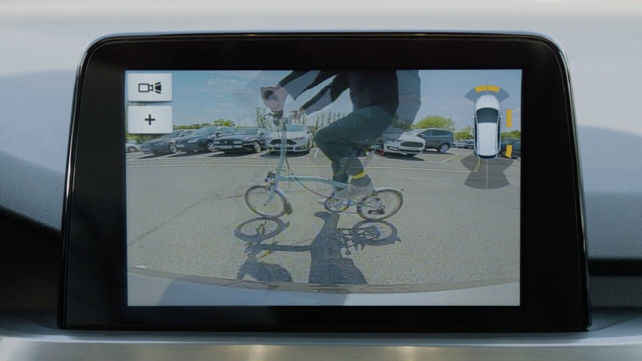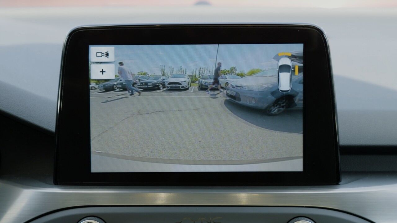 La solución que aporta el Ford Focus es una cámara trasera de 180º que va montada justo encima de la placa de matrícula y que se visualiza en la pantalla táctil de 8 pulgadas en el interior. Gracias a esta vista ampliada es más fácil detectar a los peatones, ciclistas o coches que crucen por detrás del vehículo. Cuenta con el apoyo de los sensores de radar traseros, que van avisando al conductor sobre la proximidad de objetos en punto ciegos.