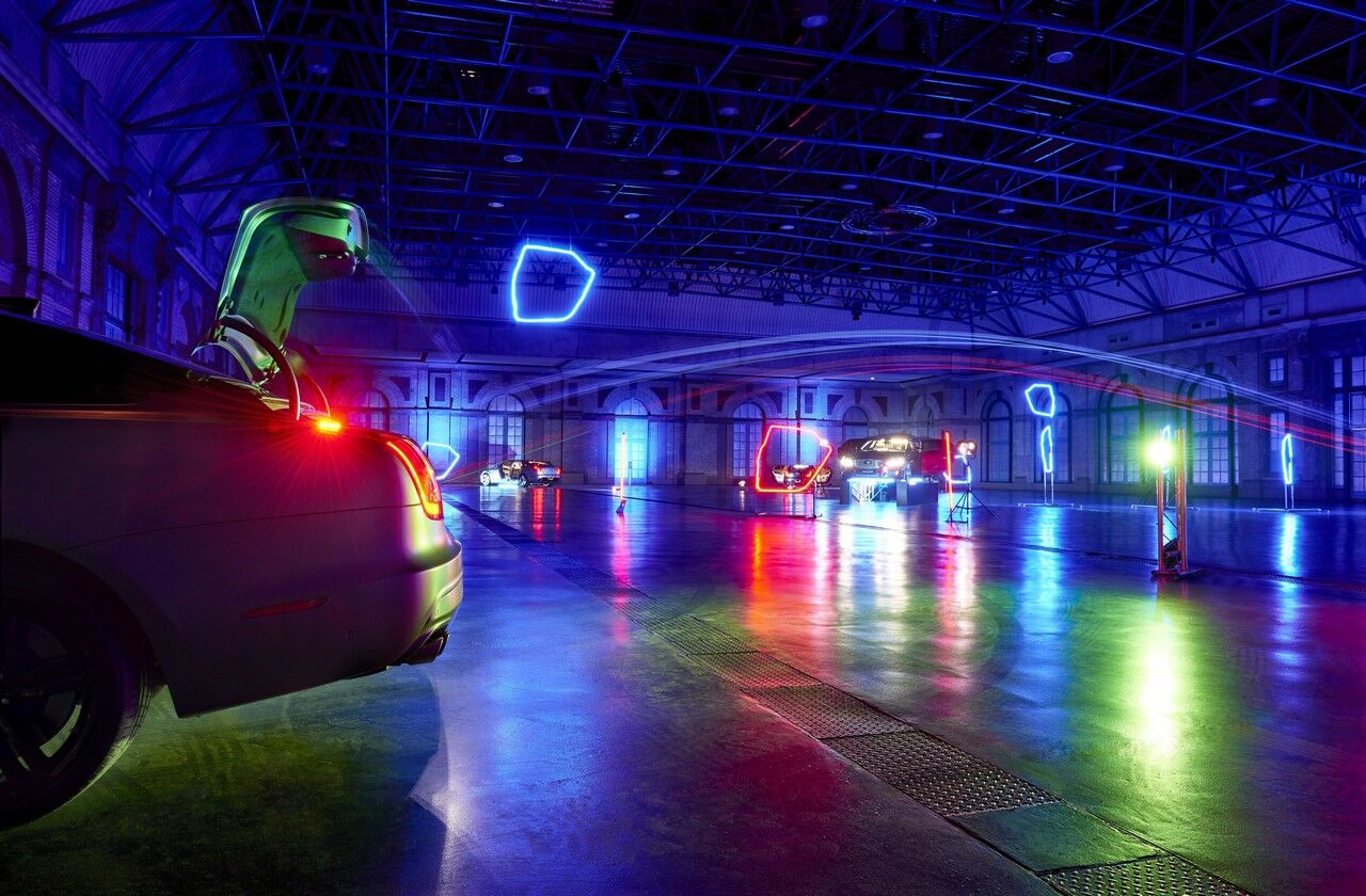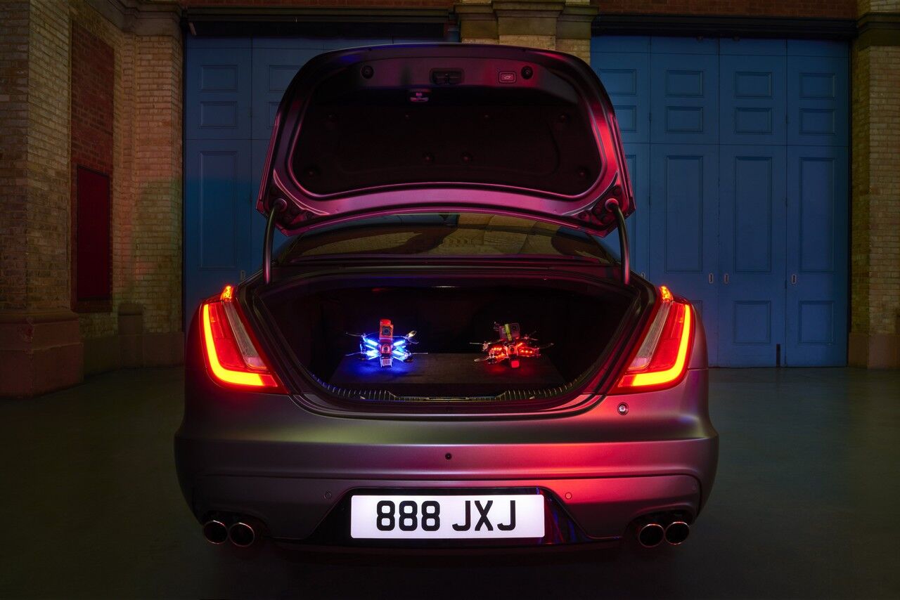 Carrera de drones con el Jaguar XJ formando parte del circuito. Galería de fotos