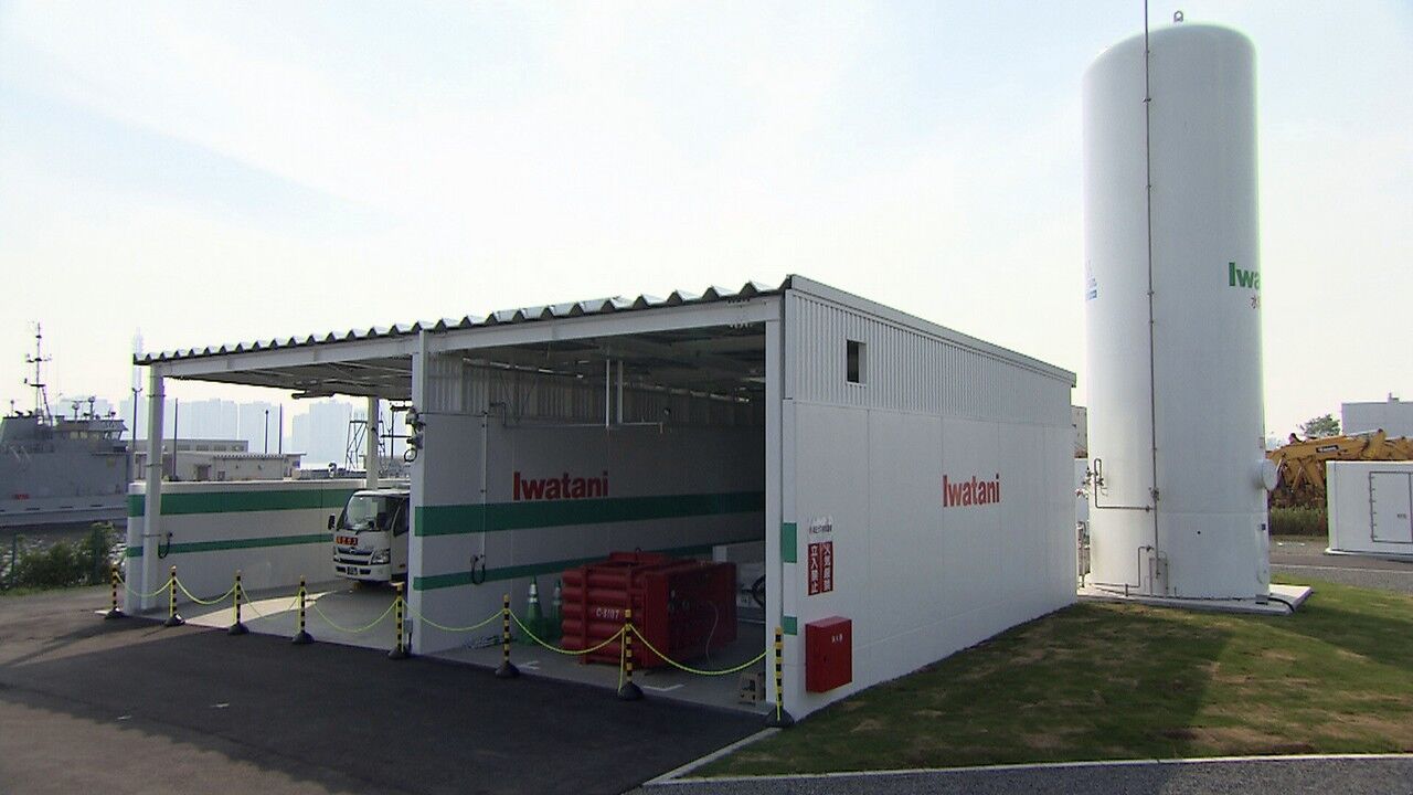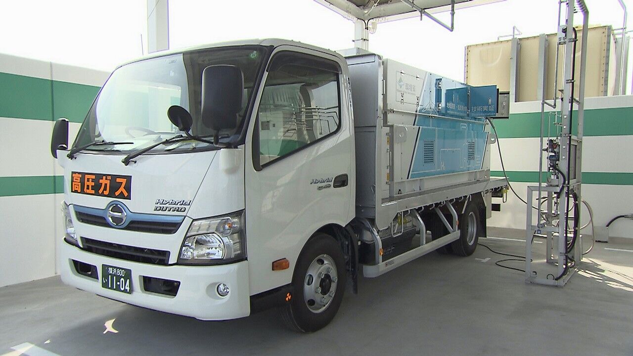 En una cabina junto al compresor se sitúa el camión que transportará el hidrógeno hasta las instalaciones donde trabajan las carretillas elevadoras que funcionan con pila de combustible. Es el primer camión de repostaje de hidrógeno utilizado para abastecer carretillas elevadoras de este tipo en Japón. El hidrógeno comprimido es transportado a distintas plantas para que las carretillas elevadoras de pila de combustible puedan ser repostadas directamente desde el propio camión. En cada viaje es posible transportar el hidrógeno necesario para seis carretillas elevadoras.