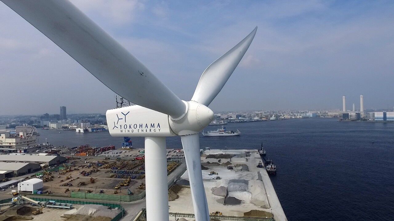 En el muelle de Mizuho, en la zona final del mismo tras la zona de almacenes, en un espacio similar al que ocuparía el patio de un colegio, se ha instalado un aerogenerador dentro del parque eólico “Hama Wing”. Este aerogenerador consiste en una torre de 78 metros de altura con una hélice en su parte superior cuyas gigantescas palas tienen una envergadura de 80 metros. Este aerogenerador produce 2,2 gigavatios anuales de electricidad, una cantidad suficiente para abastecer a 500 hogares pero cuyo fin no es realmente ese, sino producir hidrógeno.