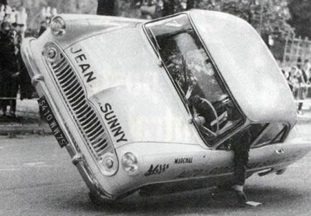 En su nueva aventura sin Simca, durante el verano, Sunny logró conseguir cuatro equipos y organizar 300 espectáculos al año. Los asistentes podían disfrutar de la conducción acrobática así como de rampas que conseguían balancear el coche e incluso saltos que pretendían superar una ristra de vehículos. ¡Estos saltos son una locura! Y es que como se puede ver en este otro vídeo el conductor francés al volante de un Citroën Traction Avant es empujado por otro vehículo hacia una rampa que le llevará a caer en picado sobre la fila de coches que allí se encuentran aparcados. Por lo que no es de extrañar que Sunny y su equipo acabaran bautizando al coche «Crash-Car».