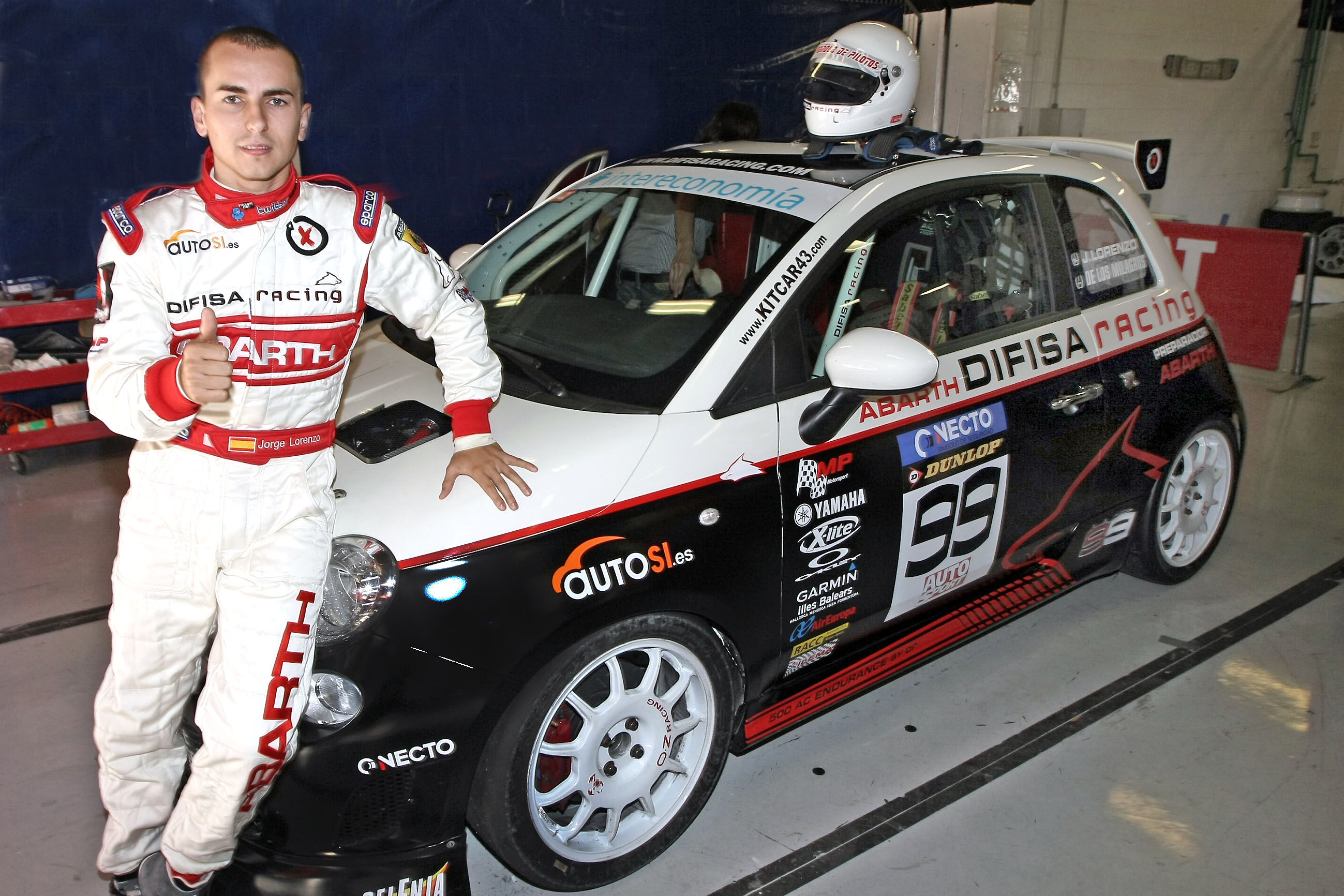 Jorge Lorenzo, campeón del Mundo de Moto GP, se pasa temporalmente a las cuatro ruedas y competirá este fin de semana en Montmeló a bordo de un Abarth 500 Asseto Corse, preparado por el equipo Difisa Racing de Sabadell.