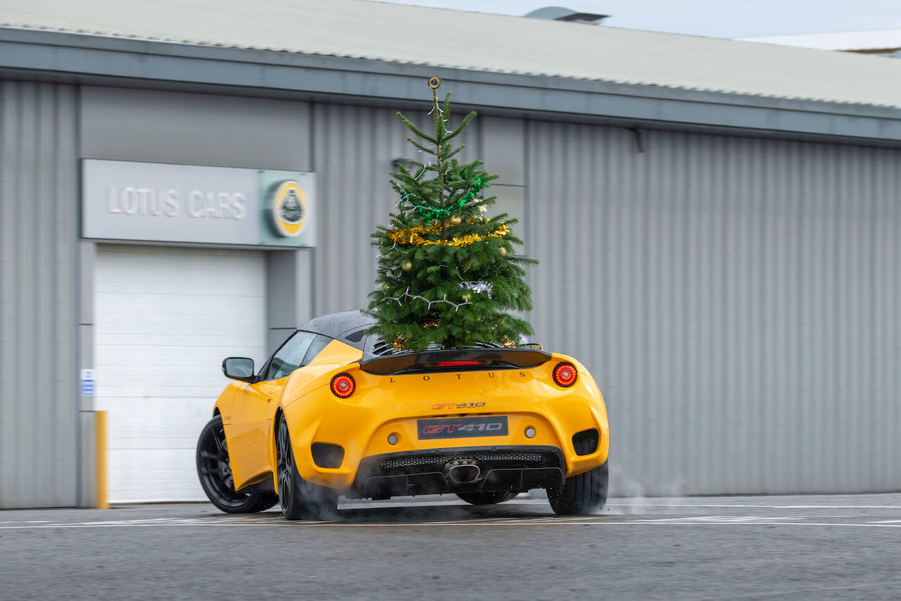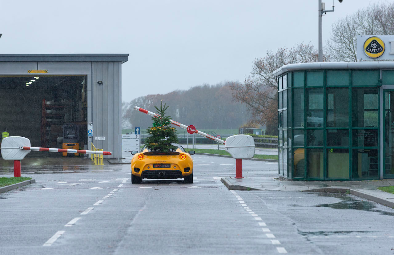 Aunque el Evora se trata de un pequeño deportivo coupé con el espacio justo para dos pasajeros, se han empeñado en llevar el árbol de Navidad en él. La única manera que encontraron fue fijándolo al techo, no seremos nosotros quienes les digamos lo contrario y menos ahora que están celebrando su 70 aniversario. Lo hacen en su sede de Hethel (Reino Unido), pues en carretera abierta tampoco sería legal lo que viene a continuación.